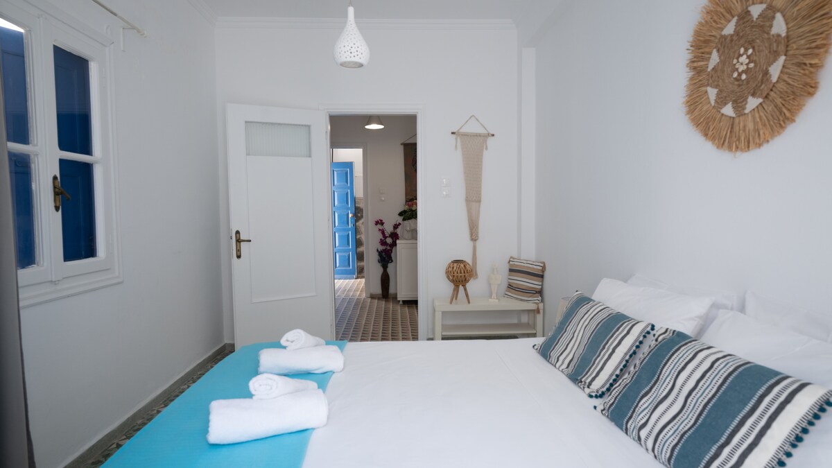 Ang perpektong badyet na pamamalagi para sa mga mag - asawa sa gitna ng Mykonos Town. Wala pang isang minuto ang layo mula sa istasyon ng bus ng Fabrika, na may mga bus papunta sa lahat ng sikat na beach at paliparan. Nakatago ang layo mula sa malakas at mataong mga kalye. Mapupuntahan ang lahat ng club, bar, restawran, at shopping sa bayan ng Mykonos sa pamamagitan ng paglalakad. Itinayo noong dekada 90 at na - renovate noong 2015, ang aming apartment ay may lahat ng kinakailangang amenidad para sa iyong bakasyon sa Mykonos!