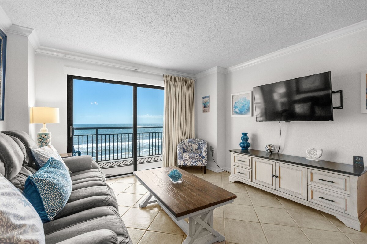 <b>11th Floor | Ocean View (Max na bisita 8) - 1,047 sq ft</b> 2 Silid - tulugan | 2 Paliguan | Pribadong Balkonahe | In - Unit Washer & Dryer 1 Hari | 2 Reyna | 1 Sleep Sofa Ang pangunahing nakarehistrong bisita ay dapat 25 taong gulang o mas matanda pa para mag - check in Perpekto para sa mga pamilya, walang kapareha, at mag - asawa. Malugod na tinatanggap sa property na ito ang mga bisitang may iba 't ibang edad! Mga Pasilidad ng Oceanfront Resort: Mga Panloob at Panlabas na Pool, Lazy River, Hot Tub Naka - attach na Gated Parking Garage - Magparada at maglakad papunta mismo sa garahe Naa - access ang ADA - Walang kinakailangang hakbang, malalawak na pinto