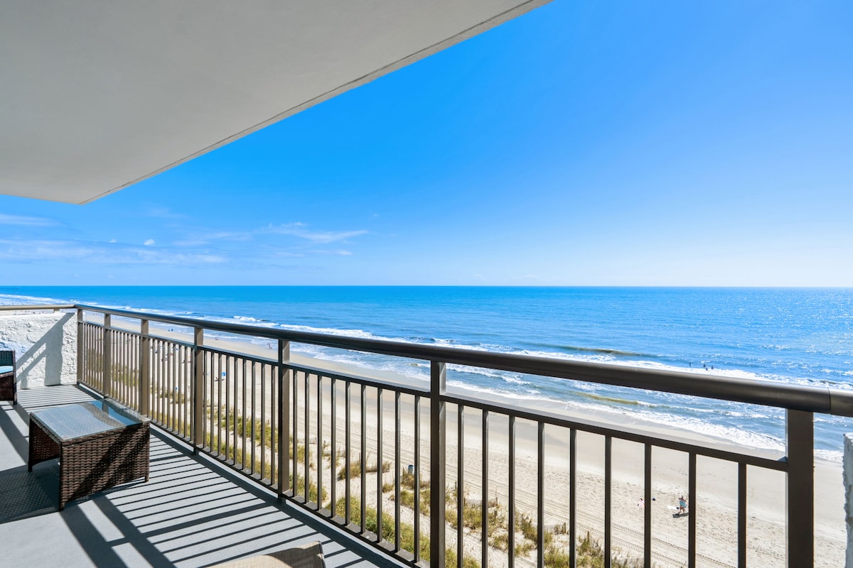 Nakamamanghang penthouse sa ika-10 palapag na may direktang tanawin ng karagatan sa Myrtle Beach! Komportableng makakapamalagi ang 4 na tao sa ganap na naayos na condo na ito na may 1 higaan at 1 banyo. Mag‑enjoy sa pribadong balkonahe, king‑size na higaan, at mga pool ng resort. Perpekto para sa romantikong bakasyon o munting bakasyon ng pamilya. Matatagpuan sa sentro malapit sa boardwalk at mga nangungunang atraksyon. Naghihintay ang iyong ultimate beach escape! Minimum na Edad para sa Pagpapa-upa 25