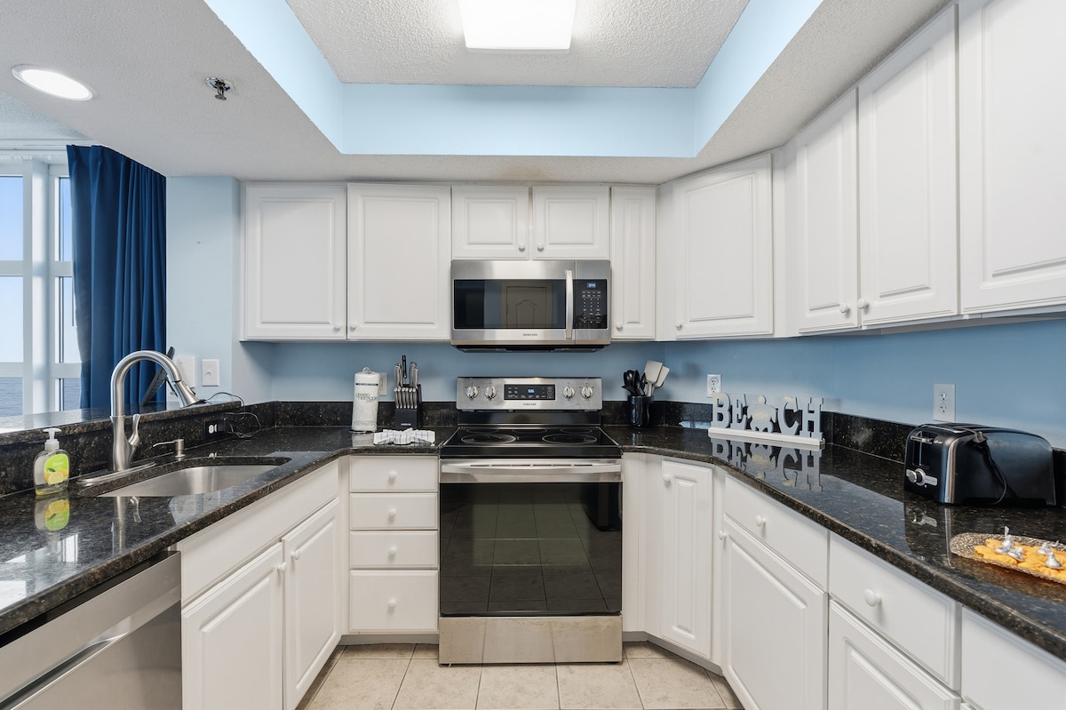 Mga bagong ayos na pool area! Maayos na na - update, Grand Atlantic Ocean Resort Unit 1705! Hanggang anim ang makakatulog sa king bed sa pangunahing kuwarto at sa dalawang full XL bed sa pangalawang kuwarto. Ang Resort ay may mga panloob at panlabas na pool area at outdoor lounging, magandang fitness center, conference room, libreng WiFi, libreng cable at direktang access point papunta sa beach! Matatagpuan ito sa Grand Atlantic Ocean Resort na ilang minuto lang mula sa SkyWheel at pier at 2 milya mula sa Myrtle Beach International Airport.