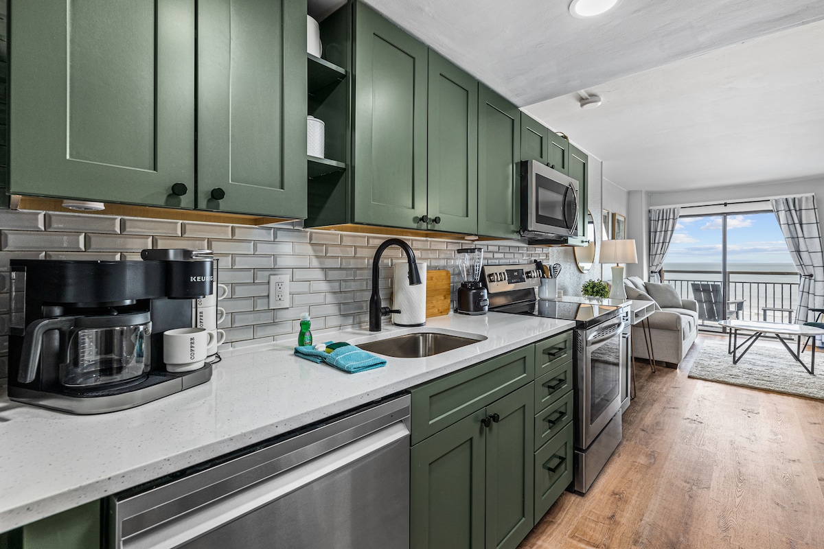 Hayaan ang kagandahan ng dagat na yakapin ka sa napakarilag, oceanfront studio na ito. Tingnan ang aming mga review para malaman kung gaano namin pinapahalagahan ang iyong karanasan! Ang bawat sulok ay nagpapakita ng malinis na kalinisan, kagandahan at mga detalye, na may lahat ng kailangan mo upang lumikha ng iyong perpektong bakasyon! Matatagpuan sa sikat na Sand Dunes Resort, na nakatayo sa tahimik na Golden Mile, ang hiyas na ito ang iyong gateway sa lahat ng inaalok ng Myrtle Beach. Naghihintay ang iyong daungan sa tabing - dagat! Mag - book ngayon at i - unlock ang pinto sa isang hindi malilimutang karanasan!