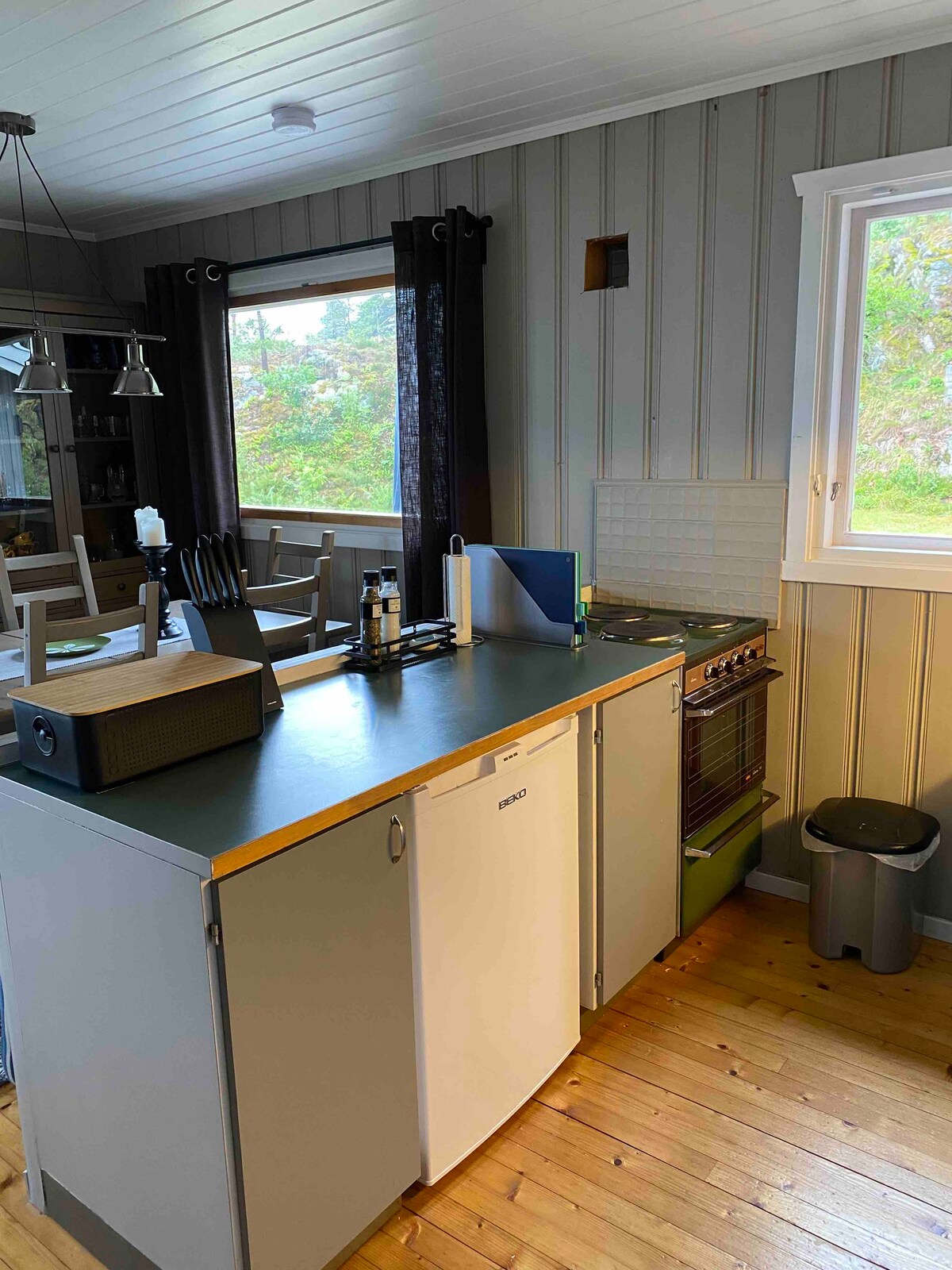 I - recharge ang iyong mga baterya sa natatangi at tahimik na property na ito. Bagong ayos na stabbur 10 km mula sa Rakkestad city center, mga isang oras mula sa Oslo. Maliwanag at maaliwalas na storage building na 100 m² na hinati sa 3 palapag, na may malalaking bintana at magagandang tanawin. 3 double bed na ipinamamahagi sa loob ng dalawang silid - tulugan sa itaas. Posibilidad na magdagdag ng mga dagdag na kutson/ higaan. Access sa mga laruan, libro at laro. Magandang koneksyon sa internet. Angkop para sa biyahe ng pamilya o bakasyon ng kaibigan.