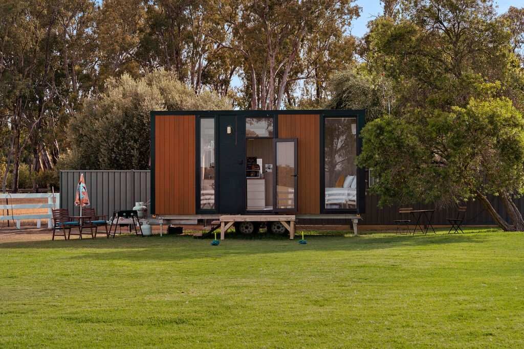 Mamalagi sa Murray Haven Farm, malapit sa Murray River. Nasa tahimik na 5‑acre na property ang munting bahay na ito, 4 na minuto lang ang layo sa ilog at mga kalapit na kaparangan. Napapaligiran ng malalagong pastulan, matatandang puno, katutubong halaman, nakakamanghang paglubog ng araw, magiliw na hayop sa bukirin, at sariwang gulay ayon sa panahon. Bukod pa rito, malapit kami sa bayan ng Cobram, na nagbibigay sa mga bisita ng madaling pag-access sa mga lokal na atraksyon at iba't ibang mga holiday home na dapat tuklasin. #TinyHouseVictoria #Holidayhomes