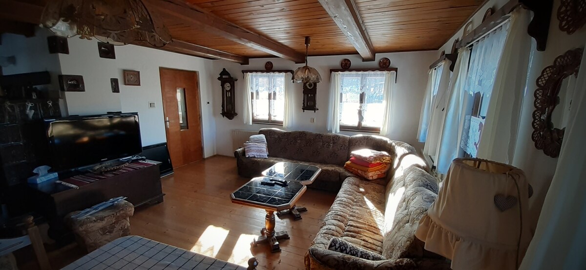 Two attic bedrooms can sleep up to 8 people (5 and 3 beds). In the ground floor, there is a common room with a dining space, a bathroom with a shower, and a toilet. The house is heated by a wood stove, and also by electricity in the attic area. There is a sheltered fire pit seating spot in the garden where you can spend your evenings, which Czech people very much enjoy. Parking is for 2-3 cars directly at the cottage (in winter in the parking lot under the cottage about 250 meters).