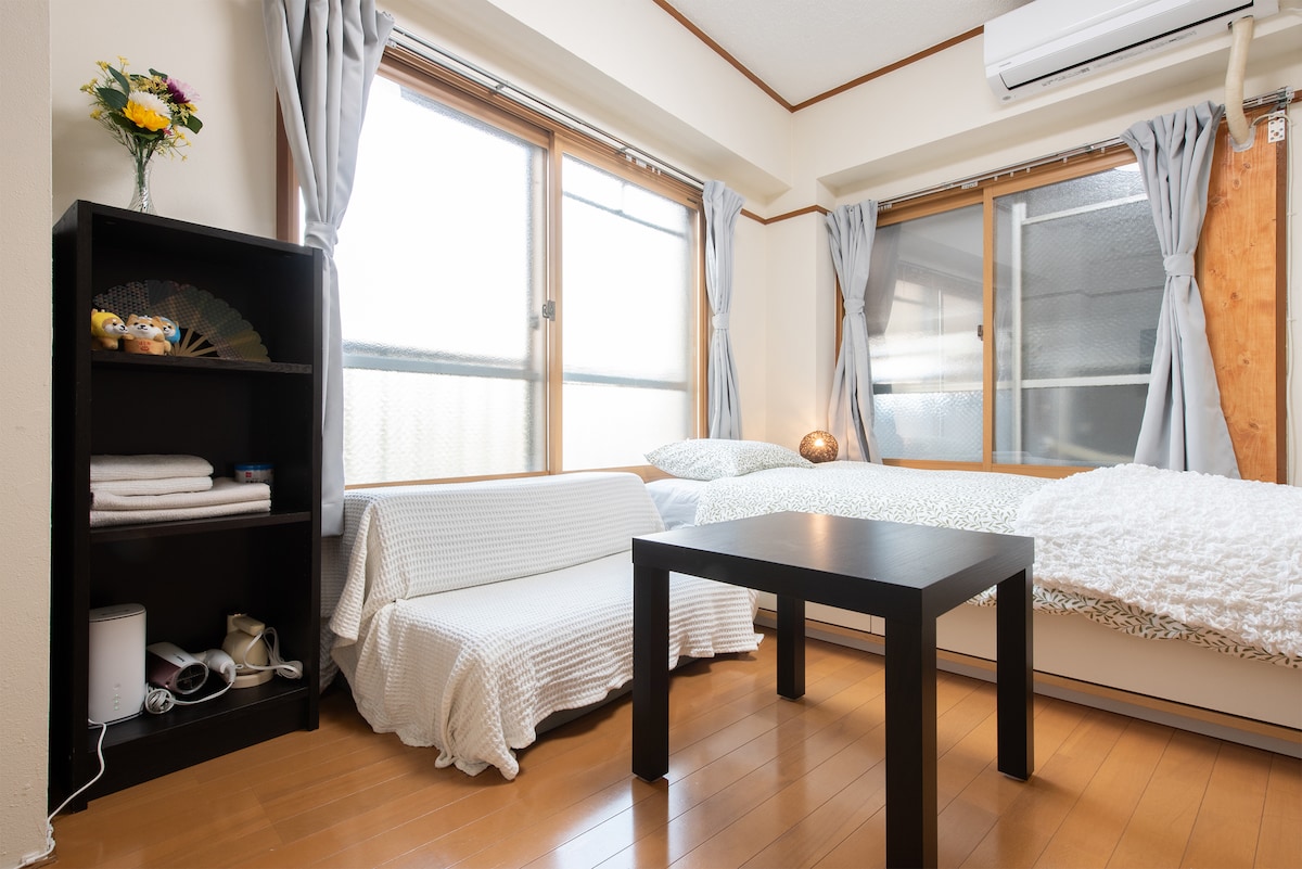 Apartment na matatagpuan sa isang napaka - maginhawang lokasyon. May dalawang istasyon sa malapit. 6 na minutong lakad papunta sa pinakamalapit na istasyon ng istasyon ng Yoyogi - Koen, kung saan maaari kang pumunta sa Harajuku sa loob ng 2 minuto sa pamamagitan ng tren, at 9 na minutong lakad papunta sa istasyon ng Sangubashi, kung saan maaari kang pumunta sa istasyon ng Shinjuku sa loob ng 4 na minuto sa pamamagitan ng tren. Nagbibigay ng LIBRENG high speed internet at Wi - Fi. Sariling pag - check in ang apartment na ito. May double - sized na higaan at isang single - sized na higaan sa kuwarto, at double - sized na sofa bed sa sala.