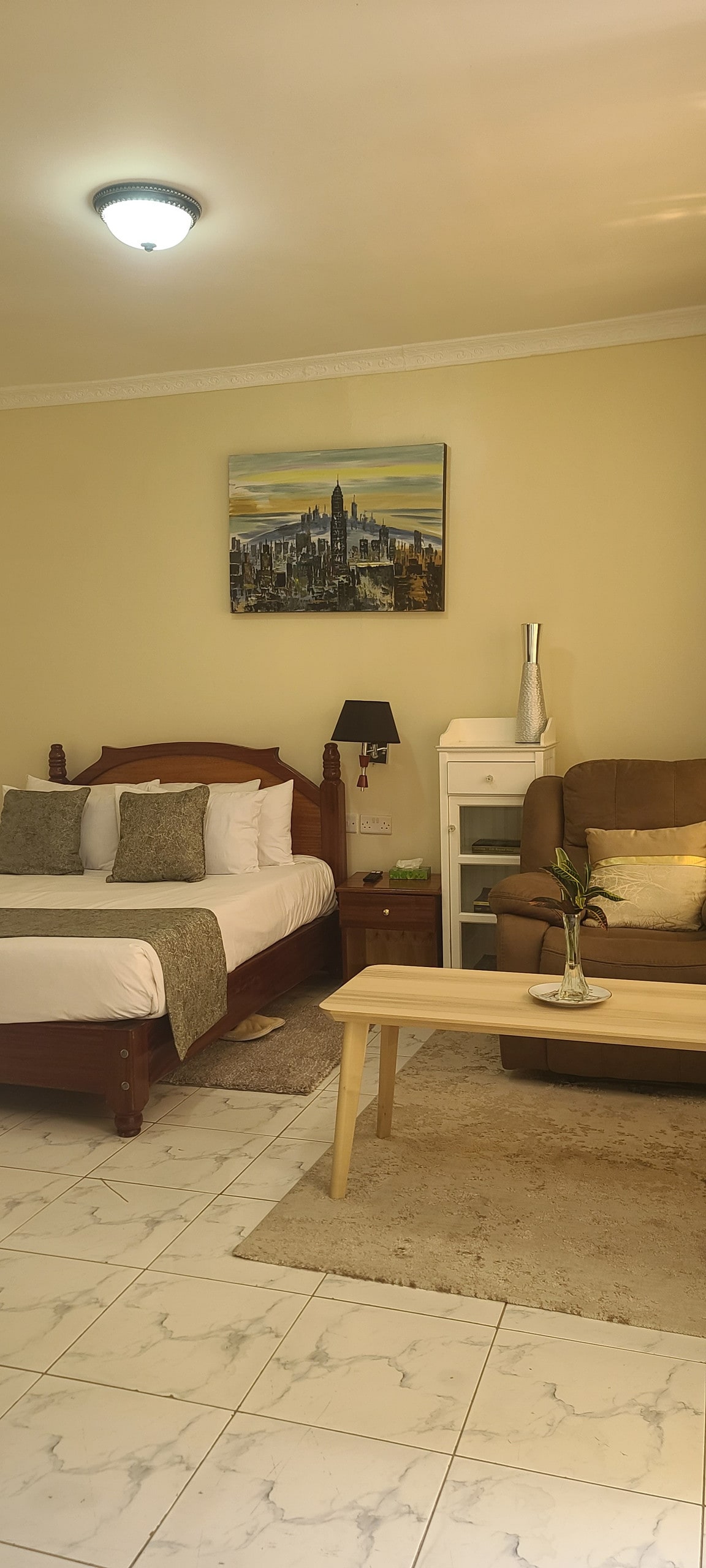 Ang naka - istilong lugar na matutuluyan na ito ay perpekto para sa mga biyahe sa grupo. Ang Ziwani Suites ay isang marangya at komportableng tuluyan. Matatagpuan ang mga suite sa Kwanza Court, Isang tahimik at estratehikong lokasyon sa Naka, Nakuru. Mayroon ito ng lahat ng amenidad na maaaring kailanganin mo para sa nakakarelaks na oras. Ito ay simple at kaaya - aya at pinapanatili namin itong napakalinis