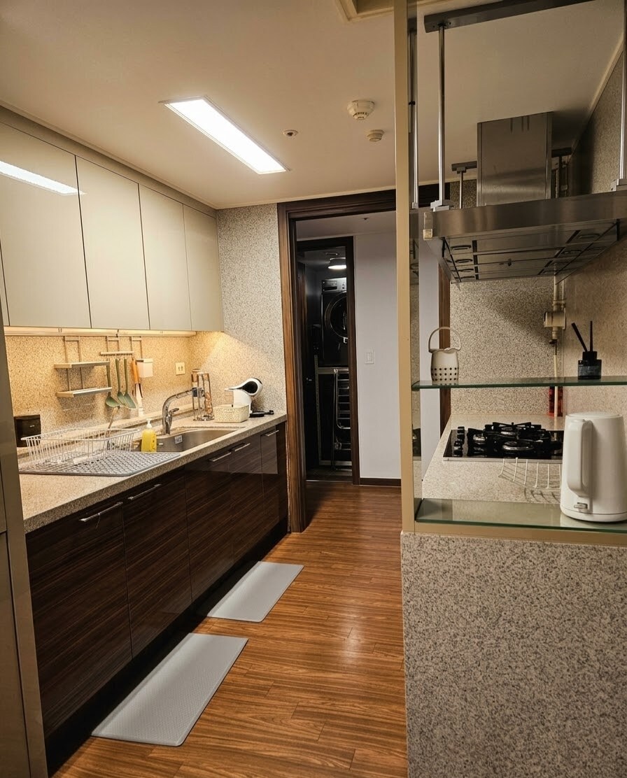 Mag - enjoy sa nakakarelaks na pamamalagi sa gitna pero tahimik na tuluyan. Puwede kang kumain sa indoor terrace at puwede mo ring dalhin ang aso mo. 40 minuto ito sakay ng kotse mula sa Incheon Airport. 5 minutong lakad lang ang layo ng Incheon City Hall, Gil Hospital, at Art Center Station (Incheon Subway). 5 minutong lakad lang papunta sa Daiso at Olive Young. May convenience store na bukas 24 na oras na 1 minutong lakad lang ang layo May washing machine at dryer kaya napakadali ng pamumuhay. May mabilis na internet, Wi-Fi, at smart TV, kaya puwede kang manood ng OTT tulad ng Netflix at YouTube.