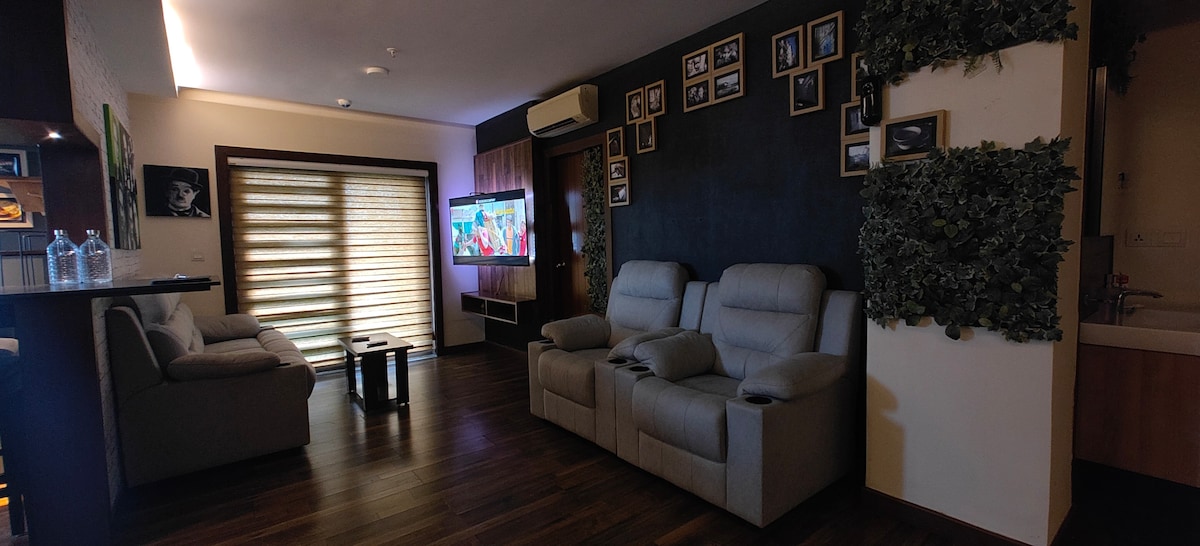 Maligayang pagdating sa iyong tahimik na pagtakas sa kalangitan, isang eleganteng high - rise na apartment na matatagpuan sa isa sa mga pinaka - hinahangad na komunidad ng Hyderabad. Matatagpuan sa masiglang Financial District, ang naka - istilong flat na ito ay nag - aalok ng perpektong timpla ng modernong kaginhawaan, mga nakamamanghang tanawin at walang kapantay na kaginhawaan na perpekto para sa mga business traveler, mag - asawa, digital nomad at pamilya. Mga Panoramic na Tanawin, Eleganteng Interior Gumising sa malawak na tanawin ng skyline ng Hyderabad at maaliwalas na kapaligiran mula sa kaginhawaan ng iyong higaan.