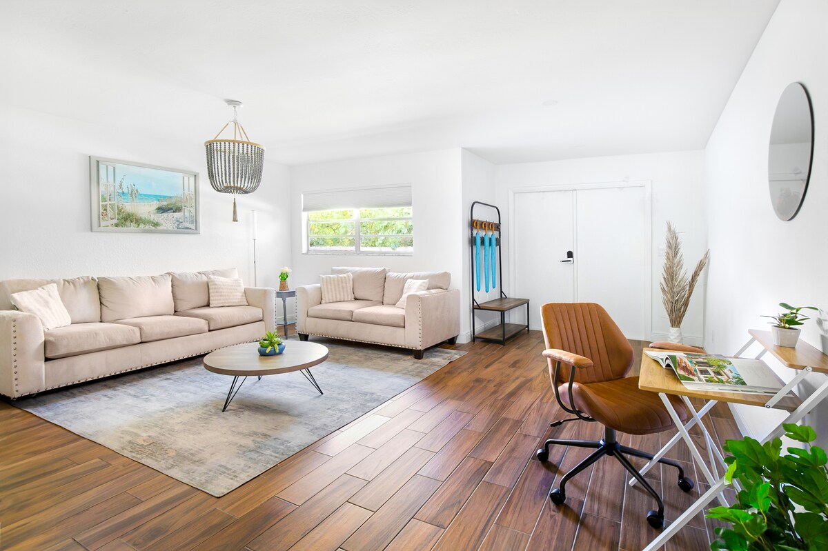 Maligayang pagdating sa iyong bagong inayos na condo sa gitna ng Olde Naples! ISANG BLOKE lang sa magagandang beach sa Naples at sa lahat ng tindahan at kainan sa 3rd Street! Ang iyong unang palapag na condo suite ay may perpektong lokasyon na ilang hakbang lang mula sa napakalaking heated pool. At sa malalaking bintana, puwede mong ipasok ang mainit na sikat ng araw sa Florida. Mayroon ding nakatalagang paradahan, common laundry, kusina, banyo, dining table, king size bed, pull out single trundle bed, at puwedeng matulog nang hanggang 3 tao.