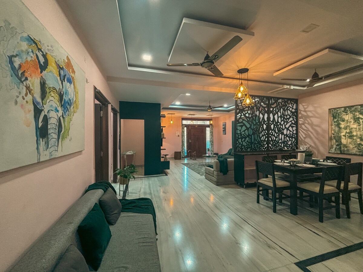 Mamahaling Independent Villa na may Jacuzzi at Theatre Room sa Gachibowli Mamalagi sa mararangyang tuluyan sa gitna ng Hyderabad na nasa pangunahing lokalidad ng Gachibowli. Perpekto para sa mga pamilya, business traveler, o grupo ang villa na ito dahil pinagsasama‑sama nito ang mga modernong amenidad at maginhawang kapaligiran para magkaroon ka ng pinakamagandang karanasan sa pamamalagi. 🌟 Kalamangan ng Lokasyon Malapit ang villa sa mga IT hub. Madali ang pagpunta sa HITEC City, Financial District, at Outer Ring Road, kaya walang aberya ang biyahe mo.