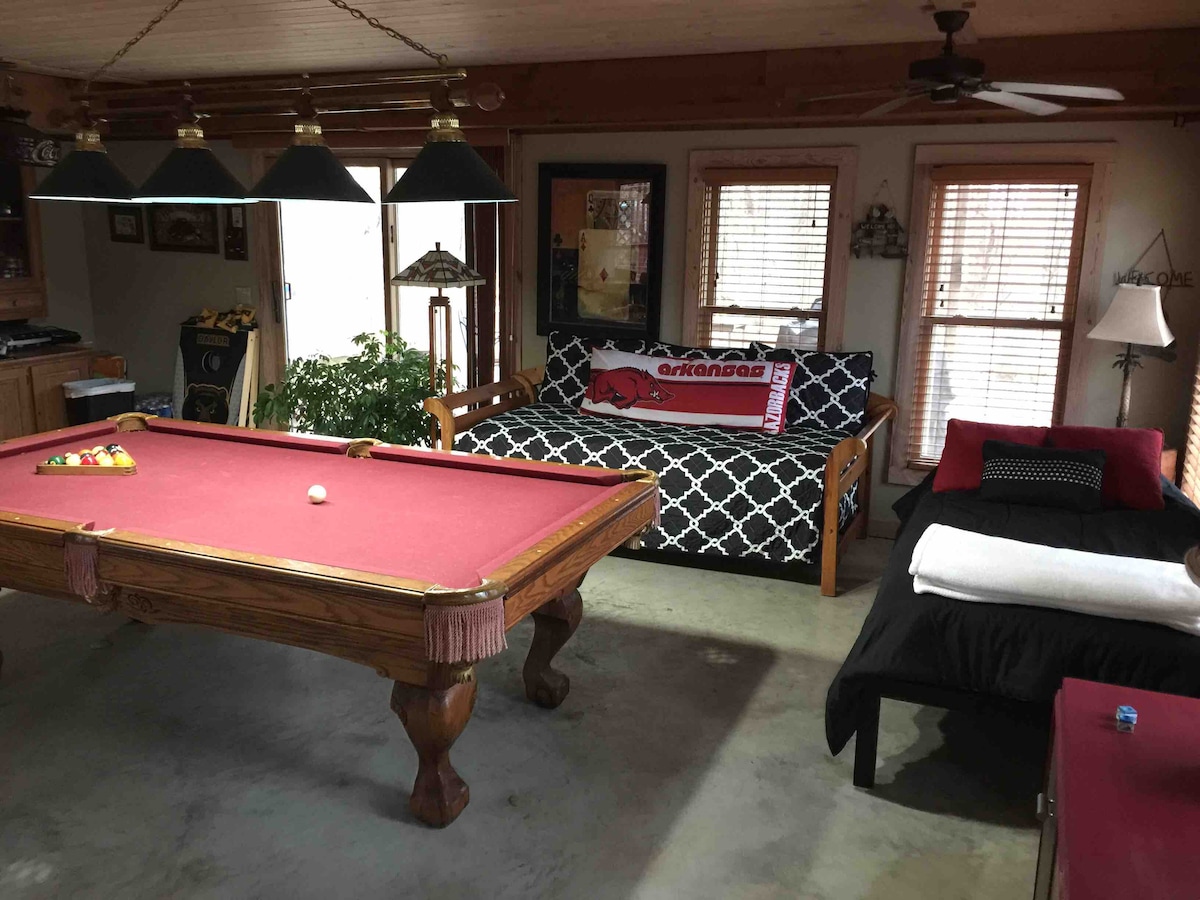 Maligayang pagdating sa pinakamagagandang bakasyunan sa Siloam Springs, kung saan nakakatugon ang modernong kaginhawaan sa Southern hospitality! Ilang hakbang lang ang layo mula sa downtown, ang naka - istilong tuluyan na ito ang iyong perpektong bakasyunan na nilagyan ng salt water pool at indoor shuffleboard. Nagtatampok ito ng lahat ng bagong naka - istilong muwebles, sa kabuuan, mga high - end na linen, isang buong sukat na indoor shuffle board table, malaking deck at maraming paradahan. Bukod pa rito, isang opsyonal na 700 talampakang kuwadrado na guesthouse na may karagdagang pribadong kuwarto na w/ Queen size na higaan, naglalakad sa shower at bukas na konsepto