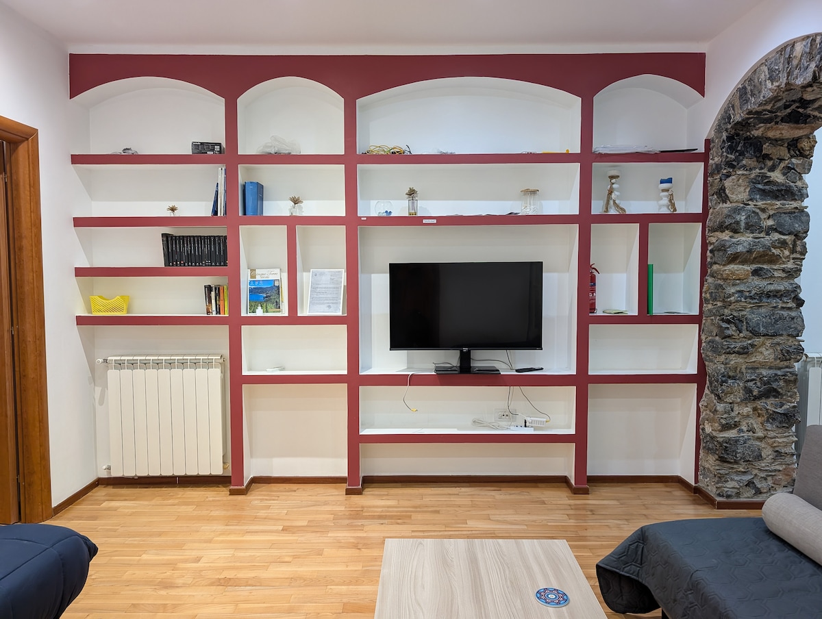 Kamakailang na - renovate na apartment sa makasaysayang sentro. Nilagyan ng lahat ng kaginhawaan at angkop para sa mga gustong magpahinga at hindi makaligtaan ang anumang bagay. Sa loob ng maigsing distansya makikita mo ang lahat ng serbisyo, sa ilalim mismo ng bahay magkakaroon ka ng malawak na pagpipilian ng mga bar, restawran at tindahan. Mapupuntahan ang istasyon para makarating sa Cinque Terre nang wala pang 10 minuto. Matatagpuan ang apartment sa IKAAPAT NA palapag NANG WALANG elevator.