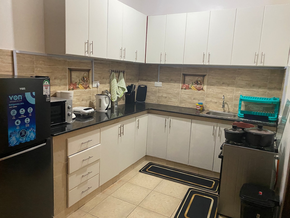 Masiyahan sa iyong pamamalagi sa aking 2 silid - tulugan ,LAHAT NG ENSUITE apartment sa tuffoam plaza na nasa gitna ng milimani, 3 minutong lakad papunta sa Westend mall na may Java, Chandarana Foodplus,Acacia Hotel,ilang bangko atbp. Maraming puwedeng gawin sa loob ng maigsing distansya, kabilang ang mga bar at restawran, o magrelaks sa bahay at manood ng Netflix . Nasa magandang lokasyon ito para makasama ang pamilya, mga kaibigan, o negosyo. Kasama sa mga amenidad ang libreng paradahan, high - speed WiFi, kumpletong kusina, at sariling pag - check in anumang oras.