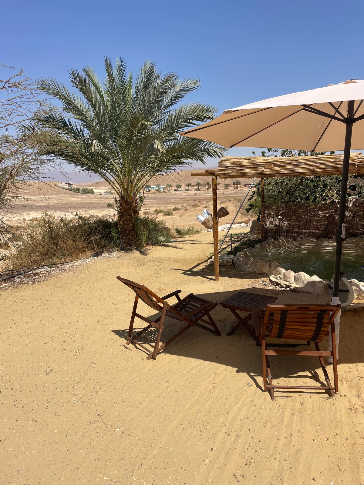 Natatanging double glamping na may mga nakamamanghang tanawin ng disyerto at lungsod ng Arad. Sa complex ay isang espesyal na glamping tent na nakahiwalay sa init at pinagmulan. Isang pampering air conditioner at pampering na panloob na banyo at isang napakalaki at may lilim na balkonahe ng deck. Sa labas ay may seating area, lugar para magsindi ng apoy, kusina sa labas at salamin sa mainit na panahon (Marso - Oktubre) Mula mismo sa bakuran, puwede kang maglakad papunta sa mga hiking trail sa paligid ng Arad, mga batis at tanawin ng Dead Sea na nasa paligid mismo. Lahat ng ginawa namin, mula sa pagpaplano, hanggang sa konstruksyon, at sa pagdidisenyo at lahat ay ginawa nang may maraming pag - iisip at pagmamahal. Maaaring i - order ang mga pagkain nang may karagdagang bayarin at may iba 't ibang opsyon sa kainan sa Arad at sa nakapaligid na lugar.