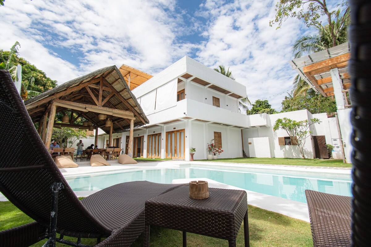 Mag‑enjoy sa eksklusibong luho ng sarili mong villa sa halagang P25,000. Magagamit mo ang 4 na suite, kusinang kumpleto sa gamit, pribadong glass pool, pribadong access sa beach, lanai, ihawan, balkonahe, at roofdeck para sa mga event mo. Saklaw ng rate ang M10 pax at 4 na batang wala pang 6 na taong gulang. Puwede kang magbayad ng sobra sa lugar na 880 kada tao na may kasamang almusal. May libreng almusal, beach, at access sa pool ang lahat ng booking. Libreng wifi, Smart TV, libreng gym, kayak para sa 3 oras bawat araw.