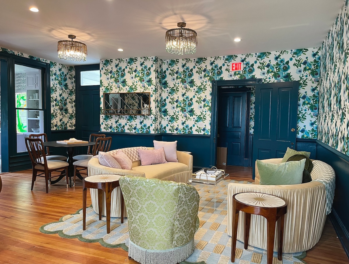 Maligayang pagdating sa bagong itinalagang Everett Estate: Kung saan nakakatugon ang Modern Luxury sa Makasaysayang Kagandahan. Ipinagmamalaki ang mga kaakit - akit na tanawin ng bundok, ang 6,700 talampakang kuwadrado na tuluyang ito ay sumailalim sa isang taon na pag - aayos upang gawing makabago at pasiglahin ang parehong tuluyan at ang malawak na bakuran. May 10 all - suite na kuwarto at 1 top - floor studio apartment, ang boutique inn na ito ay dalubhasang idinisenyo para mag - host ng hanggang 30 magdamag na bisita at kasal at kaganapan ng hanggang 125 bisita. Interior Design: Becky Seager | WKNDR Disenyo ng Charlottesville