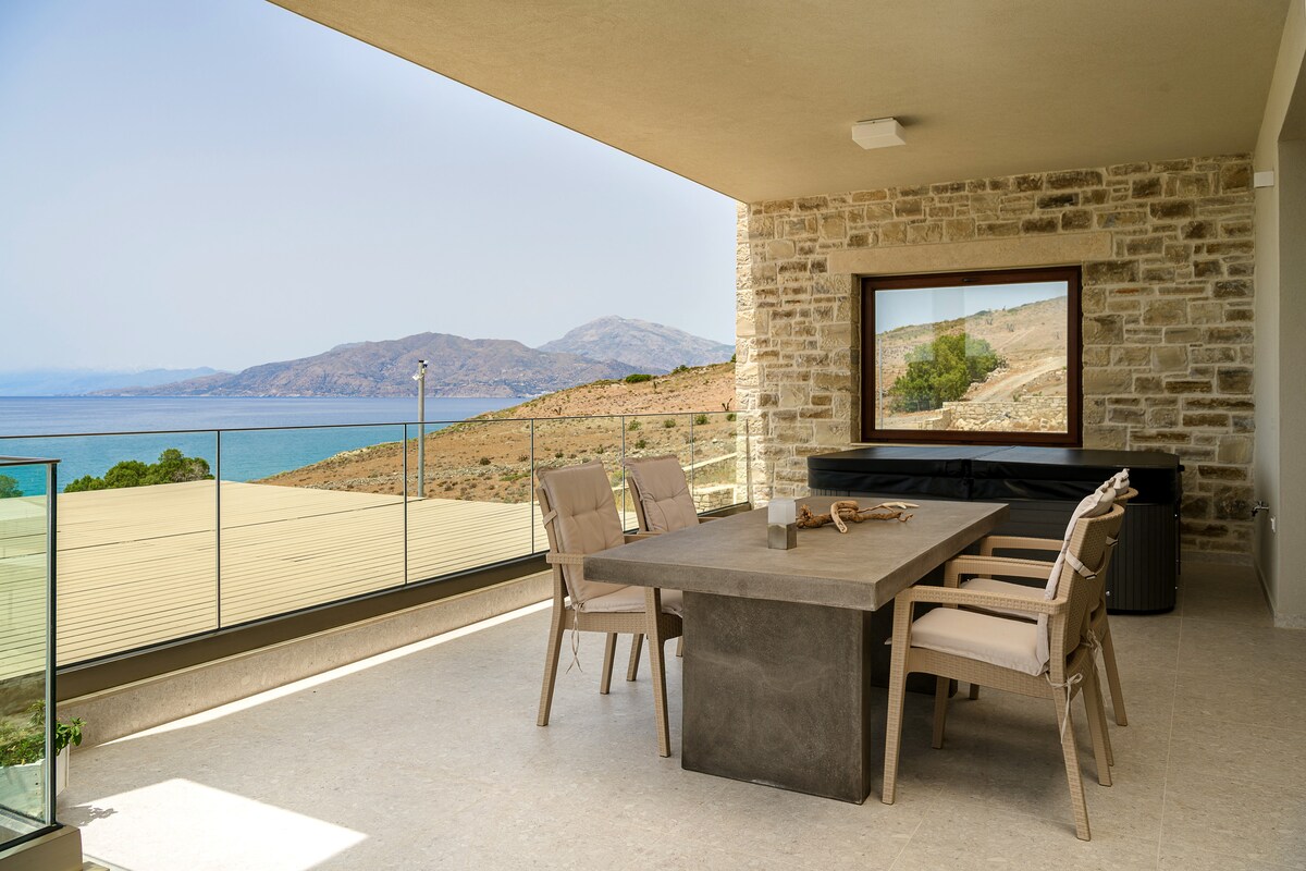 Ang Villa Kyma ay isang natatanging bakasyunan sa tabing - dagat sa Kalamaki. Tumatanggap ang 3 - bedroom villa na ito ng hanggang 6 na bisita, ilang hakbang lang mula sa dagat. Kasama sa bawat kuwarto ang pribadong banyo para sa dagdag na kaginhawaan at privacy. Ang bukod - tanging feature ng villa ay ang rooftop terrace na may jacuzzi at mga nakamamanghang tanawin ng dagat - perpekto para sa mga BBQ kasama ang pamilya at mga kaibigan. Inaanyayahan ka ng Villa Kyma na yakapin ang hospitalidad at simpleng kasiyahan sa Cretan sa isang talagang hindi malilimutang kapaligiran.