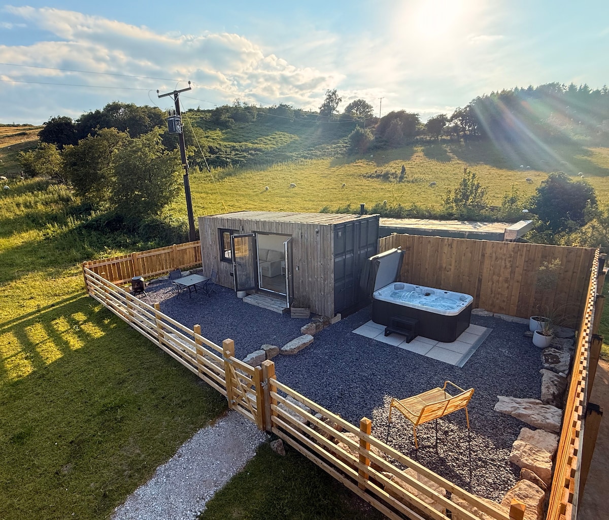 Gumising sa mga tanawin ng mga burol ng Flintshire sa marangyang bakasyunan na ito na makakabuti sa kapaligiran—idinisensyo para sa mga romantikong bakasyon at tahimik na bakasyon. Magpahinga sa king-size na higaan sa ilalim ng vaulted na kisame, na may mga kagamitang panghigda na parang nasa hotel, mga iniangkop na finish, at mga pinong detalye sa buong tuluyan. Pagdating, mag‑enjoy ng mga libreng pagkain, sariwang gatas, at pagkain para sa mga aso. Napakadaling puntahan ang Chester, Wrexham, Mold, Snowdonia at higit pa.