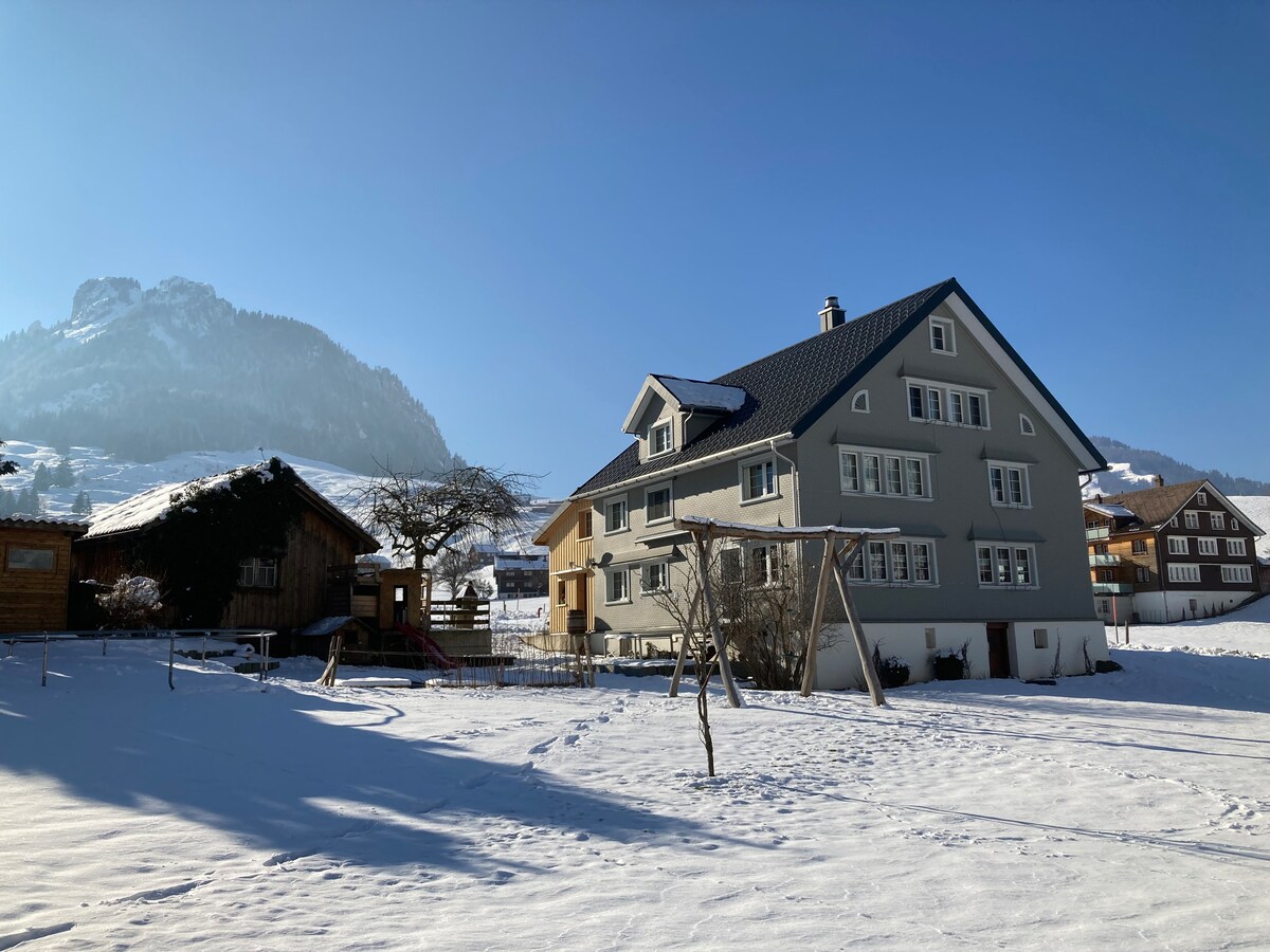 Kaaya - ayang bagong na - renovate na 3 - room apartment na may bagong kusina, banyo, malaking sala na may magandang tanawin. Pribadong seating area na may fire bowl. Paradahan. May wifi at angkop para sa mga bata ang nakapalibot na lugar. Ang rehiyon ng Obertoggenburg ay mainam para sa mga holiday sa hiking kasama ang Klangweg, iba 't ibang cable car (hal., Säntis /Chäserugg). Sa taglamig, may iba 't ibang ski resort, ang ilan sa mga ito ay may mga alok na pampamilya. Ang itaas na apartment ay inookupahan ng aming junior.