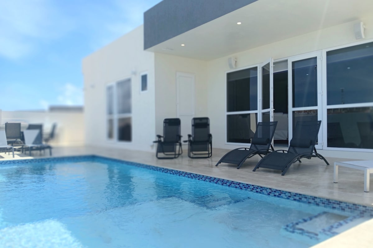 Mag-enjoy sa magandang karanasan sa lugar na ito na nasa gitna at ilang minuto lang ang layo sa isa sa mga pinakamagandang beach sa Aruba, ang Arashi. 3 kuwartong may king bed, ensuite bathroom, high end na muwebles, banyo, kusina. Bagong‑bago ang tuluyan na ito at natapos ito noong Nobyembre 2025. May pribadong pool na may mga sun lounger, banyo, shower sa labas, hapag‑kainan, at ihawan na gas. Hindi ka magsisisi dito!