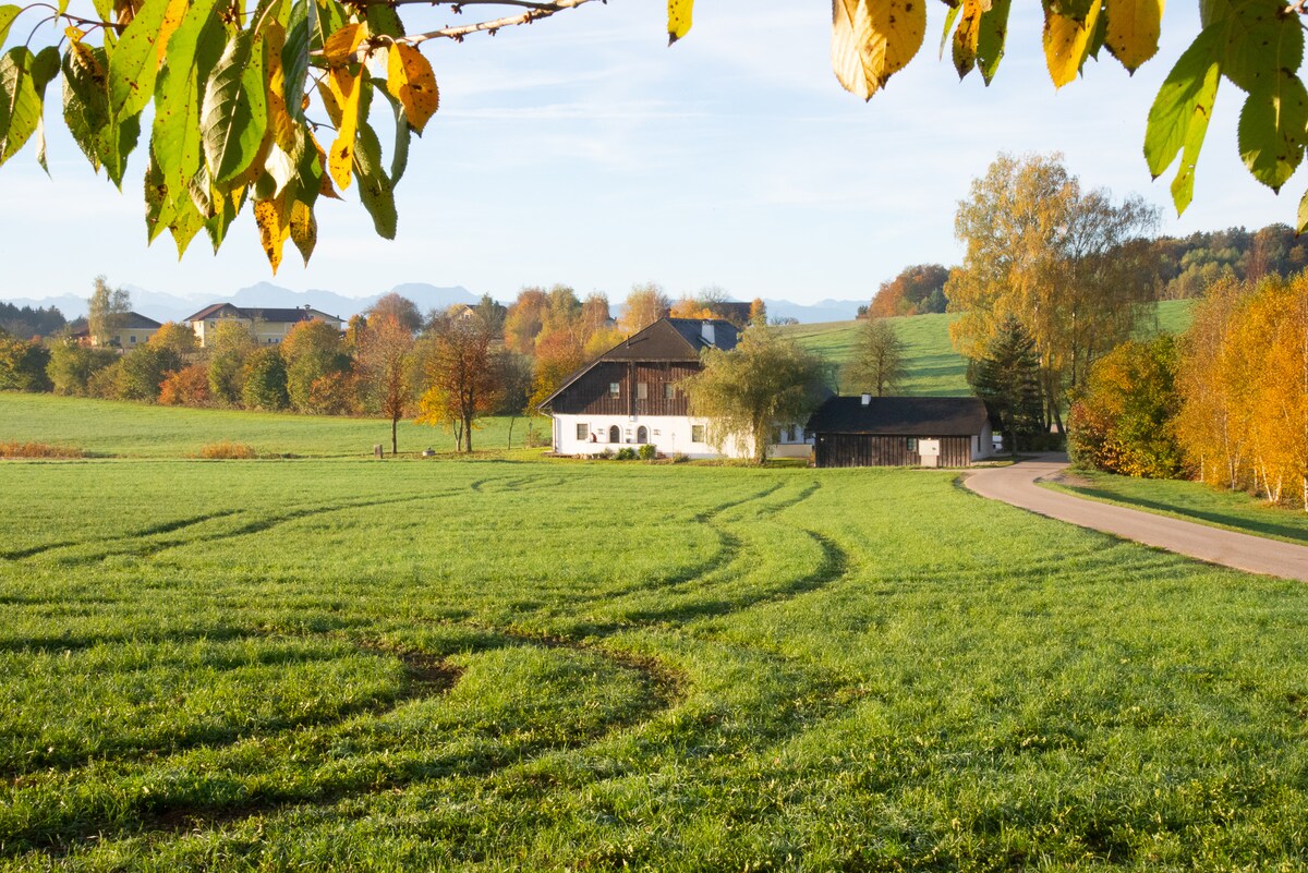 Magsaya kasama ang buong pamilya sa naka - istilong akomodasyon na ito. Purong kalikasan sa Dreiseithof na gawa sa kahoy na may mga kabayo, manok, at maraming espasyo para sa iyong mga anak. Direkta mula sa property na pupunta ka sa maraming hiking trail ng Schellenberg. Simbach am Inn / Braunau kasama ang lahat ng mga tindahan, 8 minuto sa pamamagitan ng kotse. Mapupuntahan ang tatsulok ng Rottal spa sa agarang paligid, Burghausen, Passau, Salzburg at Munich nang wala pang isang oras.