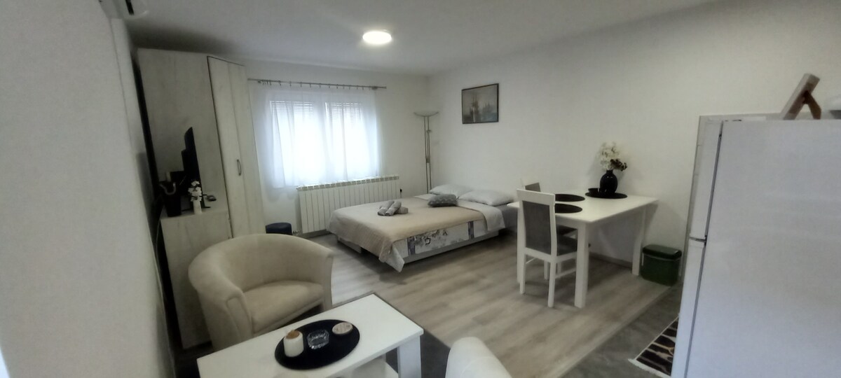 Apartment Nelly - Fontana ay isang moderno, functional at well - equipped studio sa New Belgrade. Matatagpuan ito sa ground floor na may libreng paradahan. Sa malapit na lugar ay may panaderya, grocery store, Mc Donalds, fast - food, ATM, at lahat ng ito ay gumagana 24 na oras sa isang araw bawat linggo. May mga restawran at cafeteria. Nasa intersection ng mga pampublikong linya ng bus ang apartment. Mula sa airport ito ay numero 72. Ang kakayahang gumamit ng bisikleta, dahil ang lokasyon ng apartment ay nasa tabi ng mga daanan ng bisikleta.