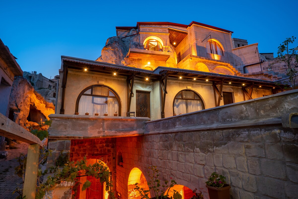 Nag - aalok kami ng mga komportable at maluluwag na lugar para sa iyo at sa iyong pamilya na magkaroon ng mapayapang nakakarelaks na bakasyon. Maaari mong maranasan ang natatanging kagandahan ng Cappadocia sa amin