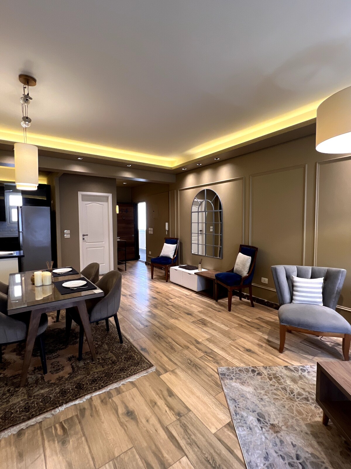 استوديو فاخر بتصميم مودرن وأجواء هادئة، perpekto para sa magkarelasyon at nag-iisang biyahero. Mag‑enjoy sa Luxury Studio na may freestanding na bathtub, modernong ilaw, at mga kahoy na finish para sa nakakarelaks na pamamalagi. 📍 Prime na lokasyon malapit sa City Stars Mall – Nasr City ✔️ Smart TV ✔️ Mabilis na Wi - Fi ✔️ Air Conditioning Maliit na kusina✔️ na kumpleto ang kagamitan ✔️ Lugar para sa pagtatrabaho nang malayuan ✔️ Unang palapag – madaling puntahan Perpekto para sa mga romantikong pamamalagi, business trip, o maikling bakasyon sa lungsod. Malinis, maayos, at pribado.