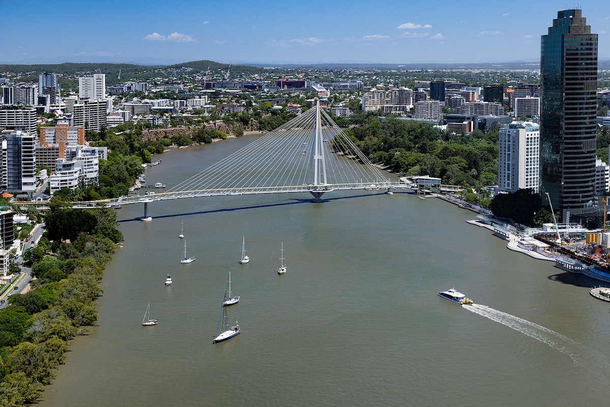Ang aming kaakit - akit na riverview at botanic - garde na tanawin ng king - sized na apartment ay perpekto para sa panandalian at pangmatagalang pamamalagi. Matatagpuan sa inner CBD, malapit sa lahat ang gusali ng Brisbane 's SkyTower sa lahat ng dako! Kasama sa mga tampok ng Apt ang: - Maluwag na silid - tulugan na may King size bed at built in na wardrobe. May mga bagong tuwalya at linen. - Sofa bed sa living area - Central air conditioning - Gas stove top na may kumpletong kusina ng chef - Malayo ang labahan - Washing machine at dryer - Coffee machine - Smart TV - Libreng WIFI