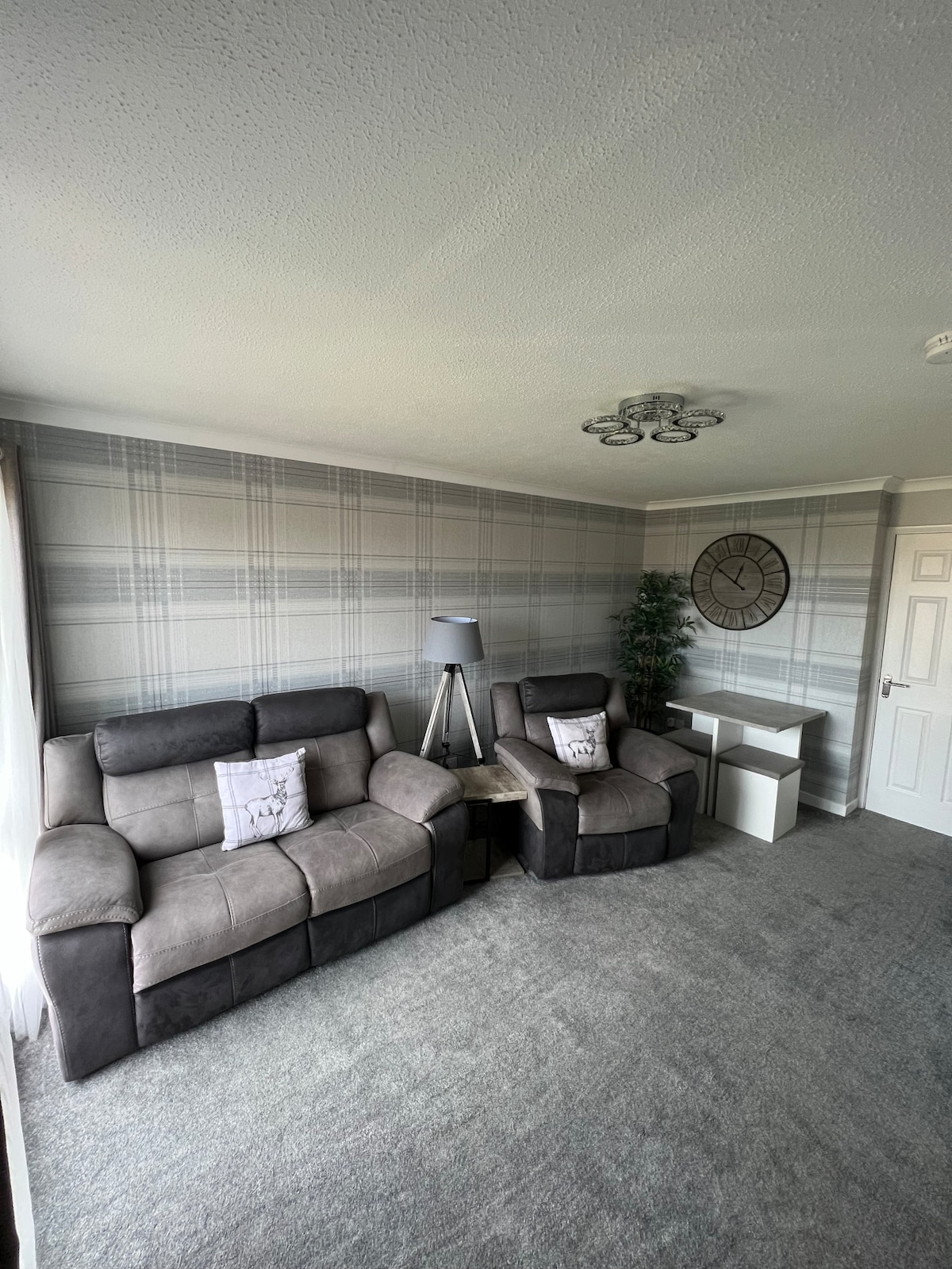 Self check-in with the whole apartment to yourself means you can relax and feel calm & cosy. Newly renovated to a high standard with a luxurious bathroom installed for you to enjoy! A clean & minimalist style kitchen. Soft carpets with electric recliner sofa in the lounge area! Includes access to WiFi & use of an Amazon fire stick so that you can catch up on your favourite movies & shows on Netflix! Free on site parking included with a great view of Hamilton Upper flat *stairs upon entry*