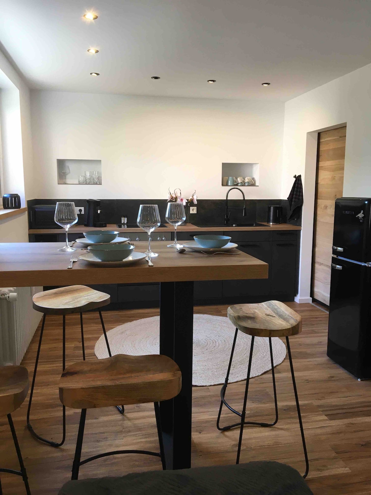 Meine Unterkunft ist in der Nähe von Natur und guter Luft und Ruhe. Du wirst das Loft lieben wegen dem Platz im Freien, den Garten, den Kamin innen für die Gemütlichkeit, 63qm zum Wohlfühlen in altem Gemäuer mit Lehmputz innen. Auf der Galerie ist ein 160cm breites Bett und ein Schreibtisch, unten eine Schlafcouch. Meine Unterkunft ist gut für Paare, Alleinreisende und Eifelfans. Alt trifft Neu ist das Motto: Alte Balken knacken auch mal, der Regen prasselt aufs Dach= Vor- und Nachteil?