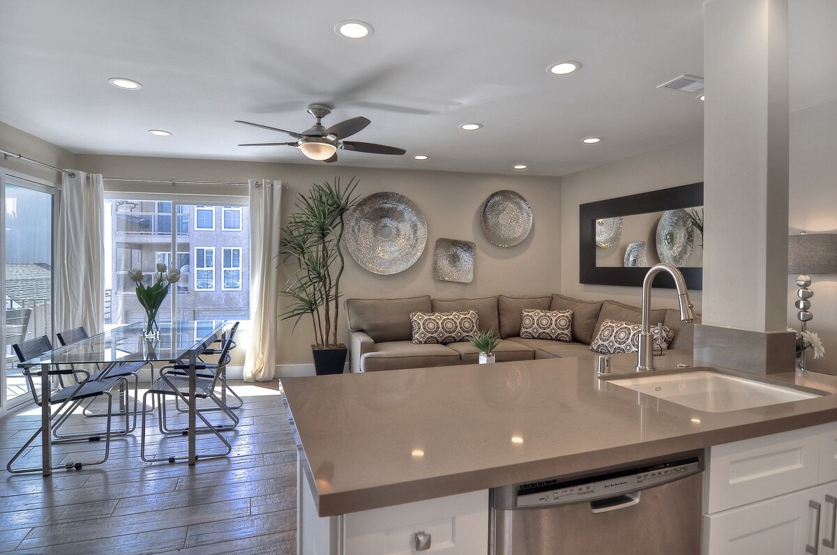 Aabutin lang nang humigit - kumulang 30 segundo para maglakad papunta sa buhangin mula sa aming yunit. Matatagpuan din ito sa gitna malapit sa Vons, isang tindahan ng liqueur, ilang magagandang restawran at fast food. Nasa dulo ng kalye ang Subway, donut shop, at coffee shop. Napakaganda ng aming kusina at garahe. Magkakaroon ka ng higit pa sa kusinang ito kaysa sa average na matutuluyan, katulad ng iyong kusina sa bahay. Sa garahe, mayroon kaming mga bisikleta, boogie board, unbrellas, upuan sa beach, laruan para sa mga bata, at marami pang iba.