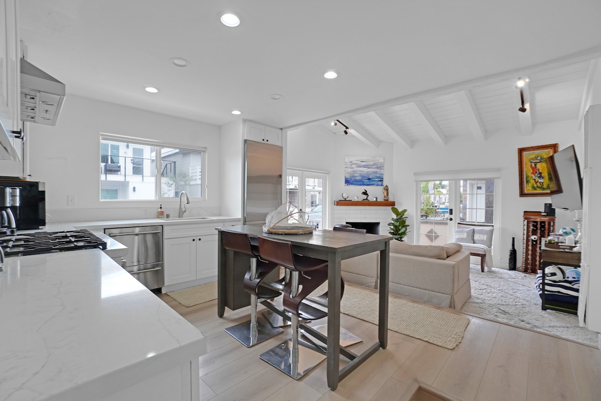 Mahusay na 2 silid - tulugan na 2 paliguan, beach cottage na may modernong kontemporaryong flare. Buksan ang konsepto para magkaroon ng maluwang na pakiramdam na may lahat ng amenidad para maging komportable. Ang yunit na ito ay ganap na natupok at na - redone, kaya ang anumang mga review bago ang Mayo 2022 ay tungkol sa mas lumang yunit bago ang pangunahing pag - aayos. Ang Lungsod ng Newport Beach ay may mahigpit na mga regulasyon sa ingay at hindi pinapayagan ang mga party at malalaking pagtitipon sa property na ito. Permit para sa Panandaliang Matutuluyan sa Lungsod ng Newport Beach #SLP13923