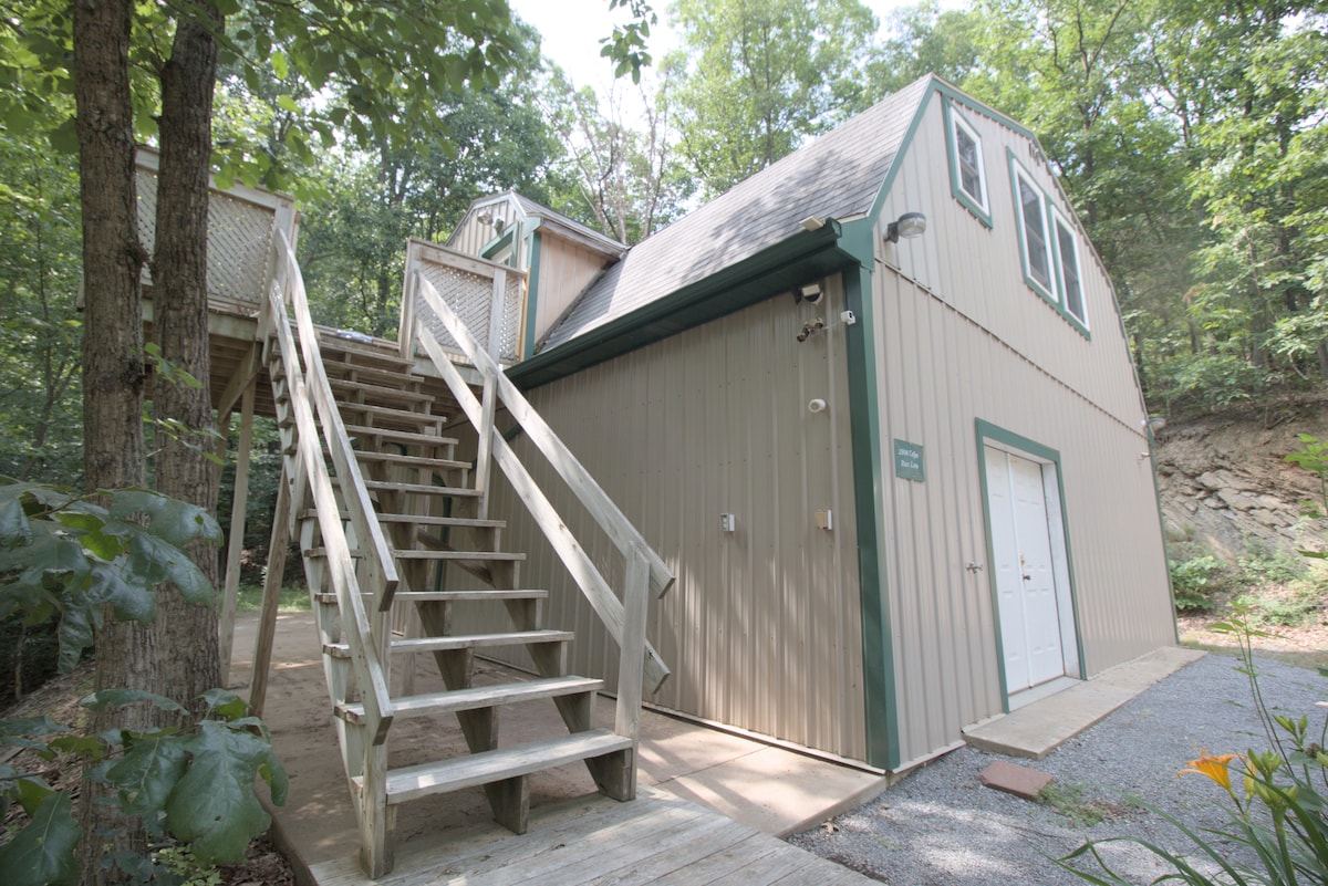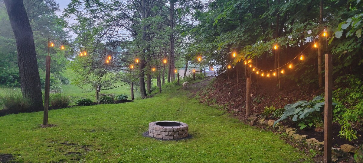 Kalimutan ang iyong mga alalahanin sa maluwag at tahimik na lugar na ito. Ang aming cabin ay tahimik na nakatago sa isang pribadong setting, ngunit maginhawang matatagpuan malapit sa isang coffee shop, maraming mga pagpipilian sa restaurant, mga convenience store, at Juniata River. Mag-relax sa front o back porch, magpahinga sa jacuzzi, o mag-cozy up malapit sa indoor fireplace!Layunin naming maging isa sa rejuvanation at koneksyon ang iyong pamamalagi.