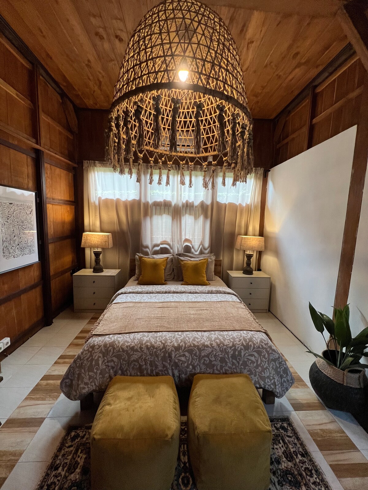 Gumawa ng mga alaala sa natatangi at pampamilyang tuluyan na ito. Inaanyayahan ng aming homestay ang mga bisita na maramdaman muna ang thrill ng pananatili sa isang royal royal royal Javanese retreat, na may mga natatangi at etnikong gusali ngunit aesthetic pa rin na may mga modernong kasangkapan sa kuwarto. Ang kaisa - isa sa iba 't ibang lahi at nakalantad na berdeng damo ay nagdaragdag sa pagiging tunay ng lugar. Maaaring malaya ang mga bisita na kumuha ng mga selfie ,kumuha ng mga video at magbahagi ng mga espesyal na alaala sa social media.