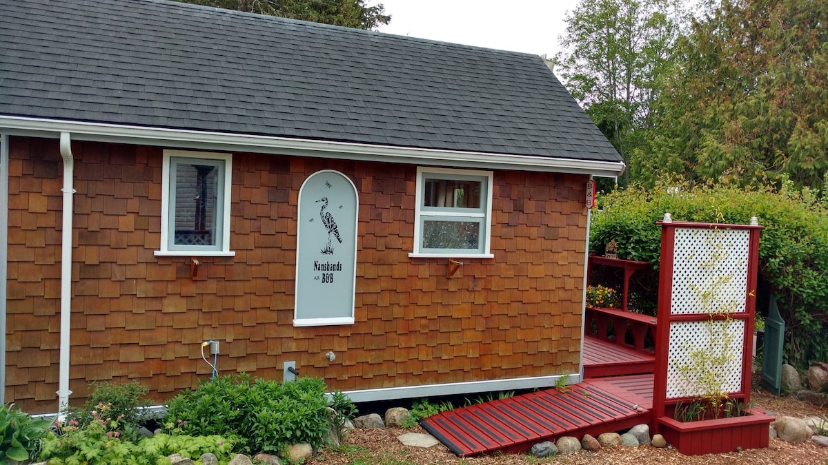 Ang cottage na ito ay isang hiwalay na gusali na matatagpuan sa parehong property ng mga may - ari. Kahit na ito ay isang maliit na cottage, mayroon itong kusinang kumpleto sa kagamitan, isang banyo, isang double bed at isang fold out couch, Mayroon ding semi - private patio para sa paggamit mo. Paumanhin walang TV ngunit nag - aalok ako ng LIBRENG wifi. Tandaan * HINDI KASAMA ang ALMUSAL. Basahin ang buong listing BAGO mag - book! Nakatuon lang sa may sapat na gulang. Mayroon akong walang anak at walang patakaran para sa alagang hayop. Mayroon ding maliit na Gift shop sa lugar.