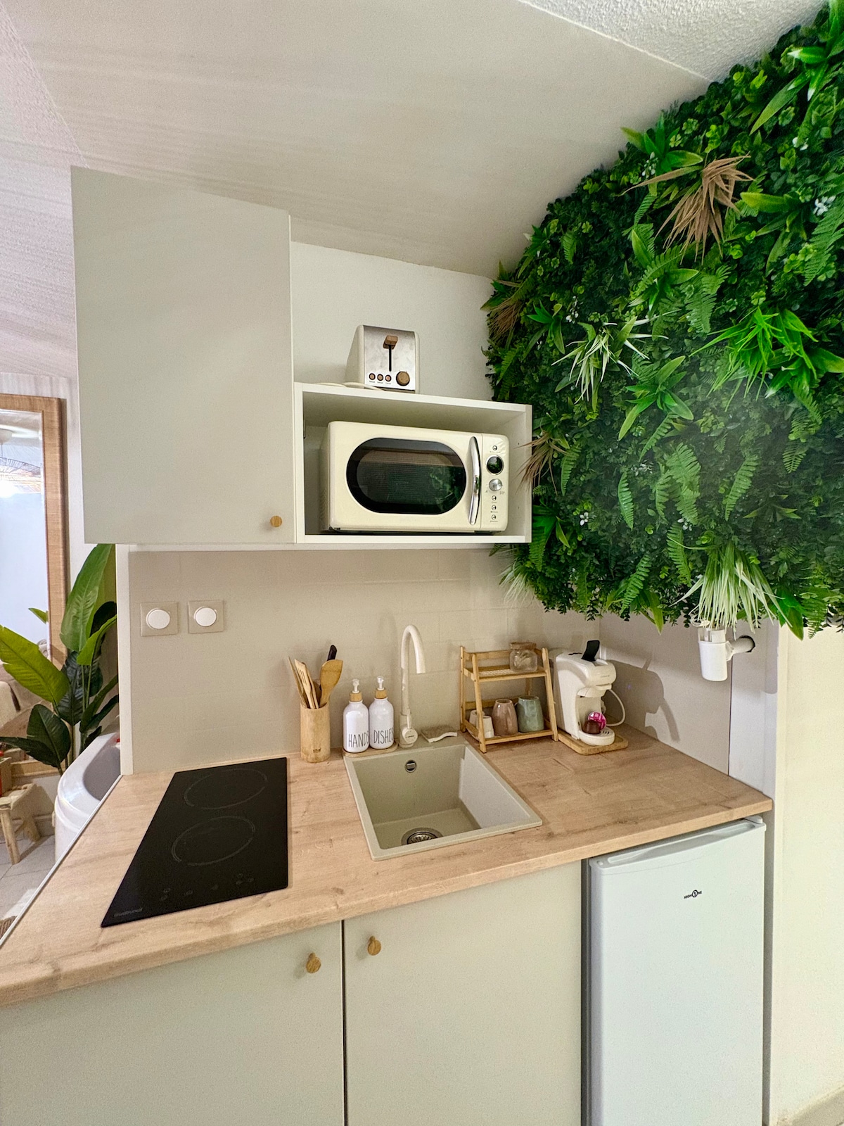Dependance 27m2 , master suite sa tabi ng aming villa. Isang swimming pool na pinaghahatian ng bahay. Pribadong pasukan na walang magkadugtong na pader na may villa Ang terrace na may mesa sa ilalim ng pergola ay nakalaan para sa iyo. available para sa iyo ang bed linen. Hindi ito studio, kaya walang tunay na kusina o lababo. Gayunpaman, nilagyan ang tuluyan sa ibaba ng refrigerator/ freezer, microwave, coffee machine, toaster, mga pinggan. Available ang asukal, tsaa, mga kapsula ng kape.