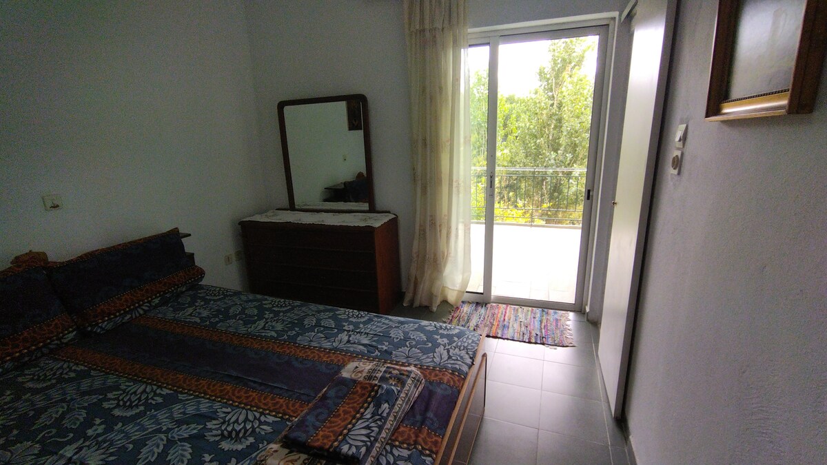 A apartment including 2 bedrooms, a bathroom, and a big living room with a kitchen and a very comftable balcony and courtyard. There is also a free parking. Our house is 10 minutes away from the airoport, 2 minutes away to the supermarket and to the bakery . A 5 minutes walk to Pizza Fun and to Traditional Greek food souvlaki.