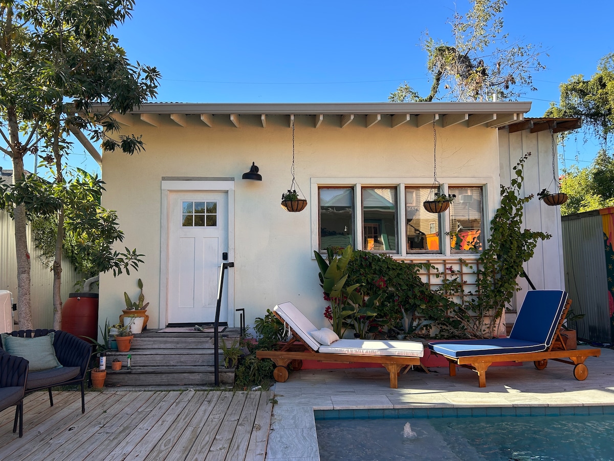Tinatanaw ng aming guest suite ang magandang pool at mapayapang hardin sa uptown New Orleans. Ito ay 5 bloke sa St Charles streetcar at maigsing distansya sa mga restawran, music club at streetcars. Mayroon itong marangyang komportableng higaan, matataas na kisame, at malalaking bintana na may mga tanawin ng hardin. Dahil sa COVID -19, muli naming pinasasalamatan ang aming patakaran na magagamit lang ng aming mga bisita ang pool. Tumatanggap ang studio na ito ng hanggang 2 tao at hindi namin mapapahintulutan ang mga party.