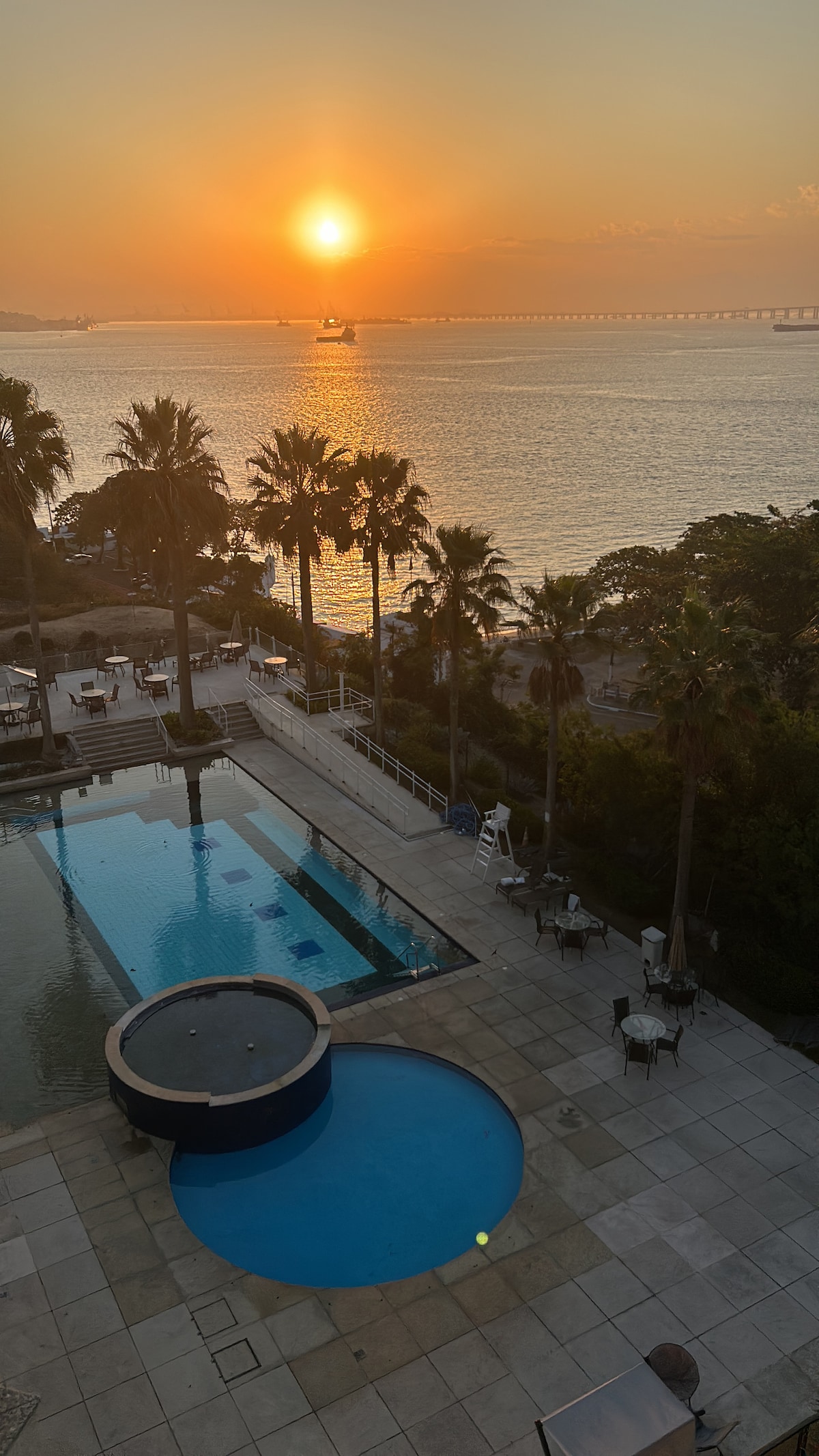 Linda e ampla localização, vista fabulosa de toda a Baia de Guanabara., serviços inclusos como piscinas interna e externa com mesas e cadeiras , academia de ginástica, hidromassagem, sauna, restaurante aberto das 6:30 às 23:00,bar, estacionamento gratuito para os hóspedes, quadra de tênis , churrasqueira. O imóvel possui 65 m2, varandas com vista para o mar, ampla sala com sofá, poltronas, mesa de jantar, tv smart, cozinha completa, quarto de casal com cama king, tv smart, mesa de trabalho.