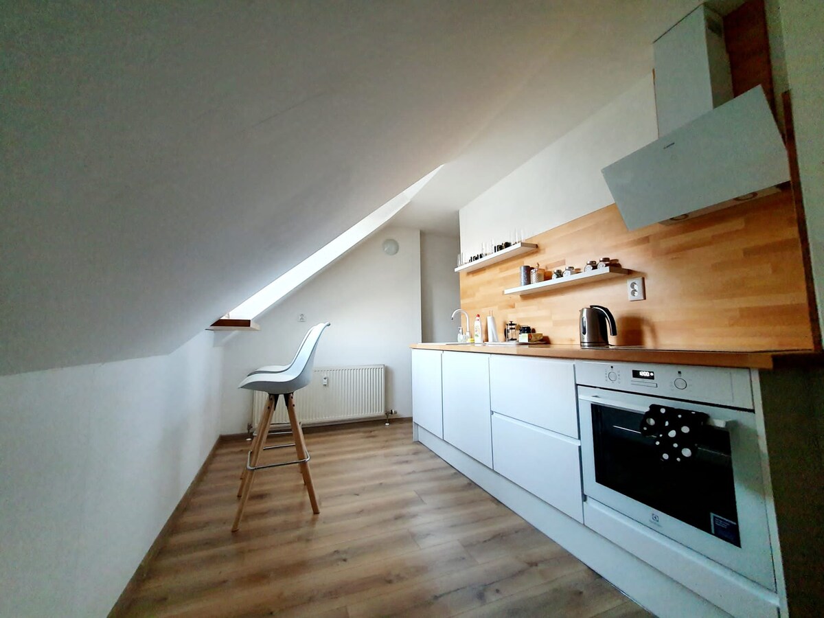 Ang Apartment Zara (binuksan mula noong 2021) ay matatagpuan sa pinakasentro ng lungsod sa Courtyard ng Europa. Ang duplex apartment ay binubuo ng kuwartong may sofa bed, double bed at kusina sa itaas na palapag ay isang malaking silid - tulugan na may double bed, balkonahe at isa pang silid - tulugan na may single bed. Ang apartment ay nilagyan ng kagamitan, washing machine heating, Wifi, flat screen satellite TV - NETFLIX, YOUTUBE, DIGI TV, mga laruan ng mga bata at higit pa.
