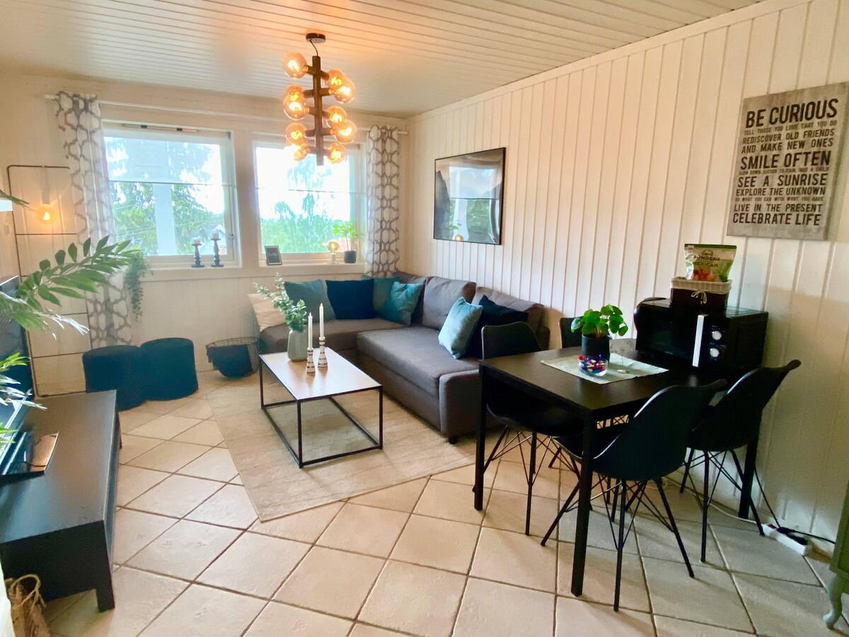 Enjoy a comfortable stay in our cozy apartment with a luxurious king bed in the master bedroom and two single beds in the second bedroom. The living room converts into a full bed. Benefit from cleaner drinking water compared to Oslo. Located in a quiet neighborhood, it’s an 18-minute walk to the store and bus station. A scenic lake with wildlife is just 10 minutes away. The apartment includes a fully equipped kitchen, modern bathroom, laundry room, free Wi-Fi, and parking.