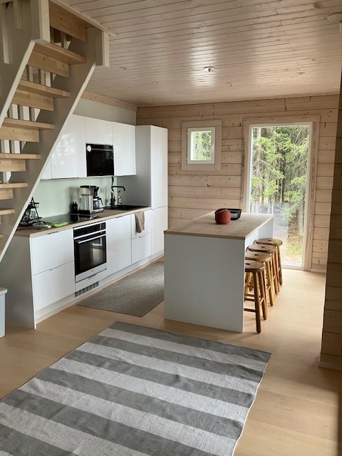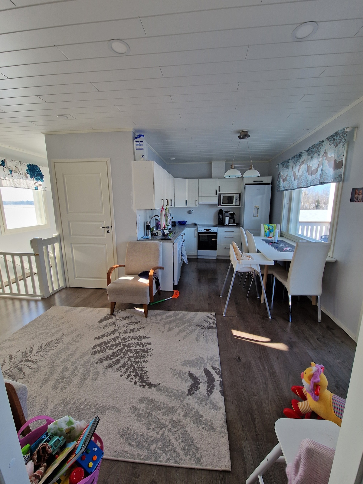 Magandang tuluyan ang cottage namin na para sa aming sariling paggamit kapag papunta sa Lapland, para sa munting bakasyon, o kahit para sa telecommuting. Sa paglipas ng mga taon, pinalaki ang cottage para magkaroon ng 3 hiwalay na tuluyan, at may working nook sa sala na angkop para sa remote na trabaho. Inuupahan ang cottage at inaasahang “mag‑relax at maglilinis ang mga bisita pagka‑alis nila.” Puwede kang pumili ng mga tamang comforter, unan, linen, at tuwalya sa aparador.