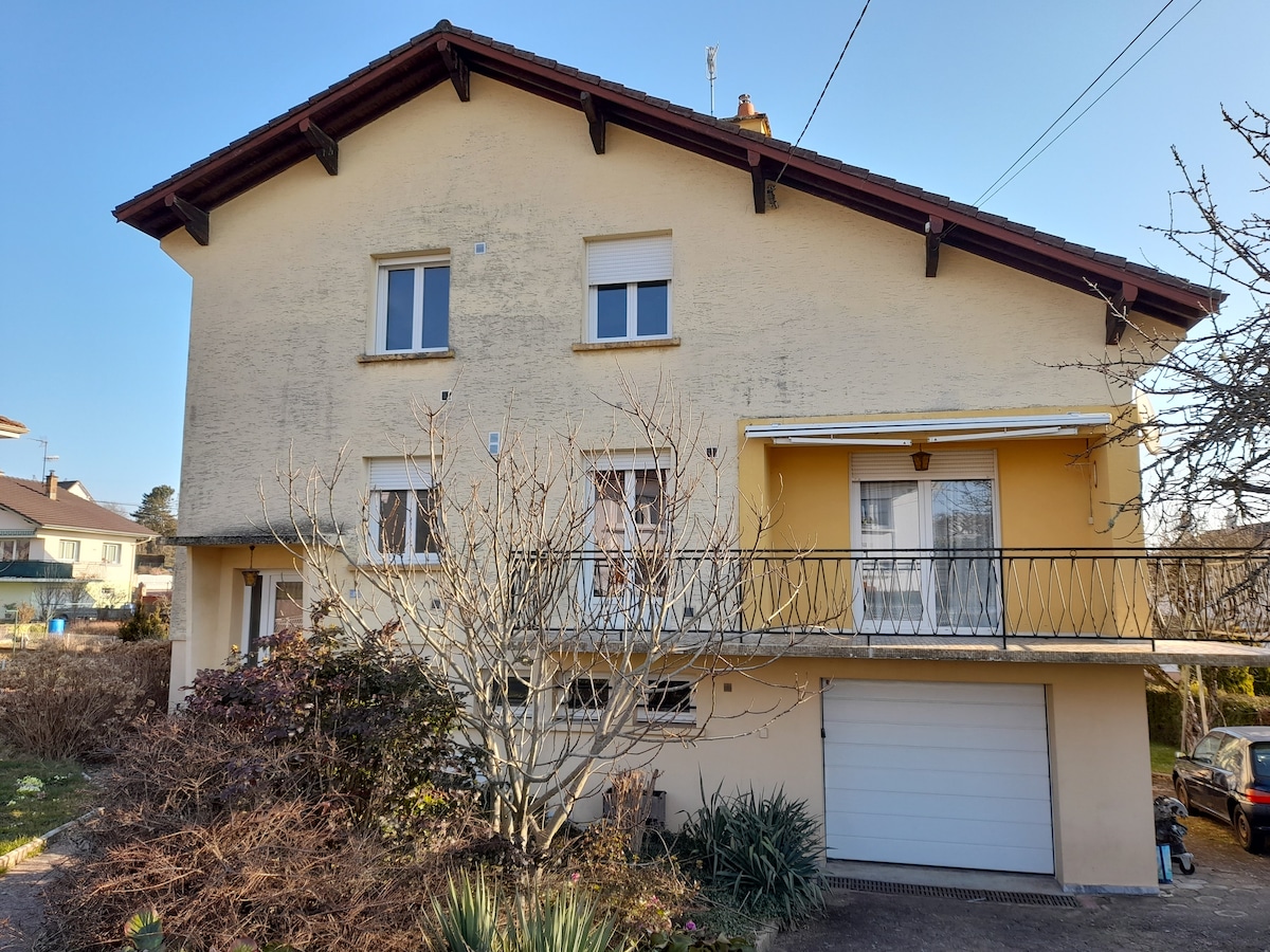 Nasa 2nd floor ng bahay Silid - tulugan 1: Double bed na maaaring paghiwalayin Kuwarto: Double bed 140 (Available ang ika -2 silid - tulugan mula sa 3 bisita) Opisina 20m2 dining area (Available ang kusina sa sahig) Pribadong sala (31m2) Pribadong banyo (12m2) Malaking patyo at nakatalagang lugar ng muwebles sa hardin 1 minuto mula sa mga lawa gamit ang kotse (10 minutong lakad) Highway exit # 10 (bahay 2 minuto ang layo) Mga Distansya: - 7 minuto mula sa Montbéliard - 15 minutong Belfort - 10 minutong istasyon ng TGV - 2min Technoland - 500m ang Coulée Verte
