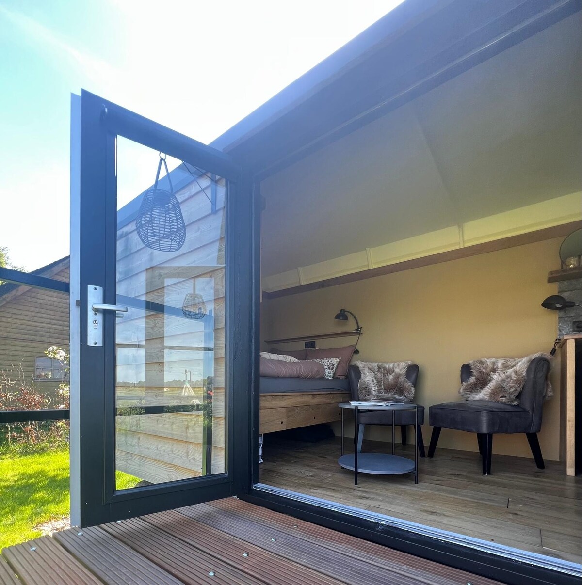 Gezellig en romantisch chalet op Campingpark Pool te Matsloot. Aan het Leekstermeer nabij de Stad Groningen en de dorpen Roderwolde, Leek en Roden midden in het natuurgebied de Onlanden. Dit romantische tiny house biedt een unieke kans om te genieten van de rust en de natuur. Ideaal voor wandelaars, fietsers en watergenieters. Ideaal voor een ontspannen vakantie of weekendje weg. Met Paviljoen Pool waar je heerlijk kunt eten en drinken op 50 meter afstand met uitzicht op het meer.