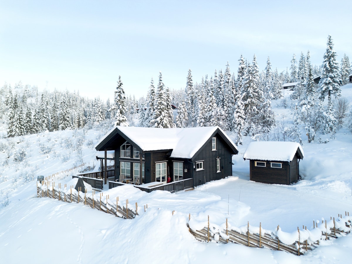 Darating ka sa isang mainit at kaaya - ayang cabin na perpekto para sa mga nakakarelaks na araw sa mga bundok. Ang magandang cabin na ito ay nakumpleto noong 2020 at idyllically nakaupo sa 1006 metro sa itaas ng dagat. Maingat na pinipili ang bawat pagpili ng mga materyales para matiyak ang pinakamainam na kalidad, at mainam na pinalamutian ang loob ng mga yari sa kamay at pasadyang muwebles mula sa Tafa Furniture sa Gol. Sa pamamagitan ng mga malalawak na tanawin mula sa lahat ng sala, maaari mo ring tamasahin ang pagsikat ng araw mula sa bathtub o mula sa sauna.