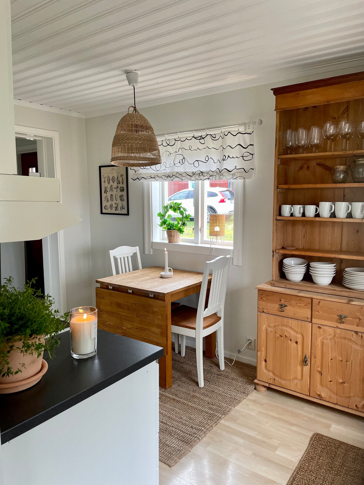 Bagong ayos at pinalamutian na cottage sa gitna ng nayon. Kasama ang bedlinen at mga tuwalya, ginawa ito at handa na! Kumpletong kusina kung gusto mong magluto. Magandang sala na may fireplace at dining area kung saan matatanaw ang tubig. Sariwang banyo kung saan may shampoo/conditioner/shower gel. Malaking terrace kung saan matatanaw ang makipot na look papuntang Skatan, araw buong araw. Sunbeds. Malaking glazed section na may mga kasangkapan sa pagkain. BBQ grill. Sariling damuhan para sa panlabas na paglalaro. May mga party game, libro, at outdoor game.
