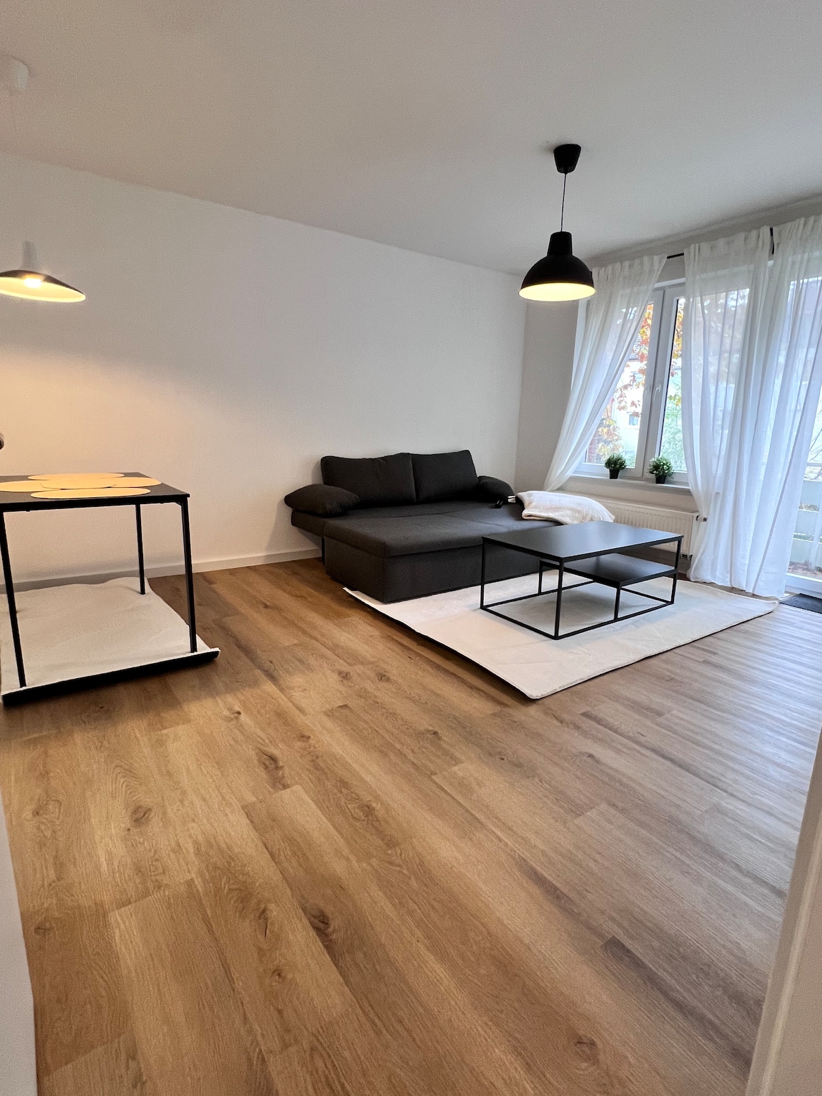 Nasa tahimik na lokasyon ang accommodation sa cul - de - sac sa tabi ng parke na may maliit na lawa. Tinatayang 35m² ang laki ng kuwarto, may sariling kusina at banyo at nag - aalok ng espasyo para sa 2 matanda at hanggang 2 bata na may double bed at sofa bed. Ang accommodation ay nasa basement at may taas na 2.09 m ang taas ng kisame. Ang mga supermarket at restawran (5 -10min) at pampublikong transportasyon (bus 2min) ay nasa agarang paligid. Karaniwang available ang pampublikong paradahan.