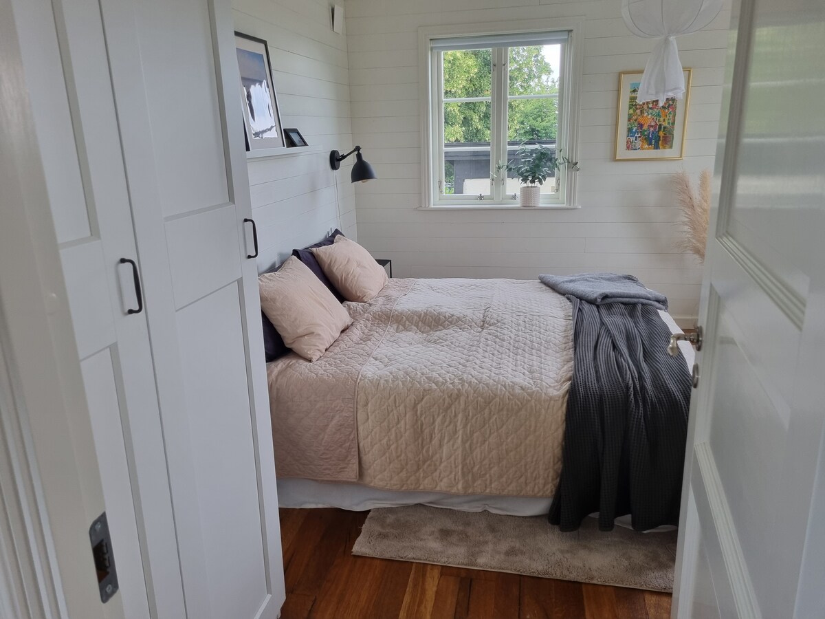 Matatagpuan ang aming pribadong komportableng guest cottage sa pinakamagandang lugar, sa kaakit - akit na lumang fishing village na Svanshall. Magkakaroon ka ng isang glimt ng dagat kapag nag - aalmusal at 1 minutong lakad lang ang layo mo mula sa paglubog sa Skälderviken. Kung narito ka para sa hiking, nasa labas lang ng hardin ang Kullaleden. Personal na pinalamutian ang cottage ng kuwarto para sa 4 na tao. Isang silid - tulugan na may queen - sized bed at isang sofa bed, double sized.