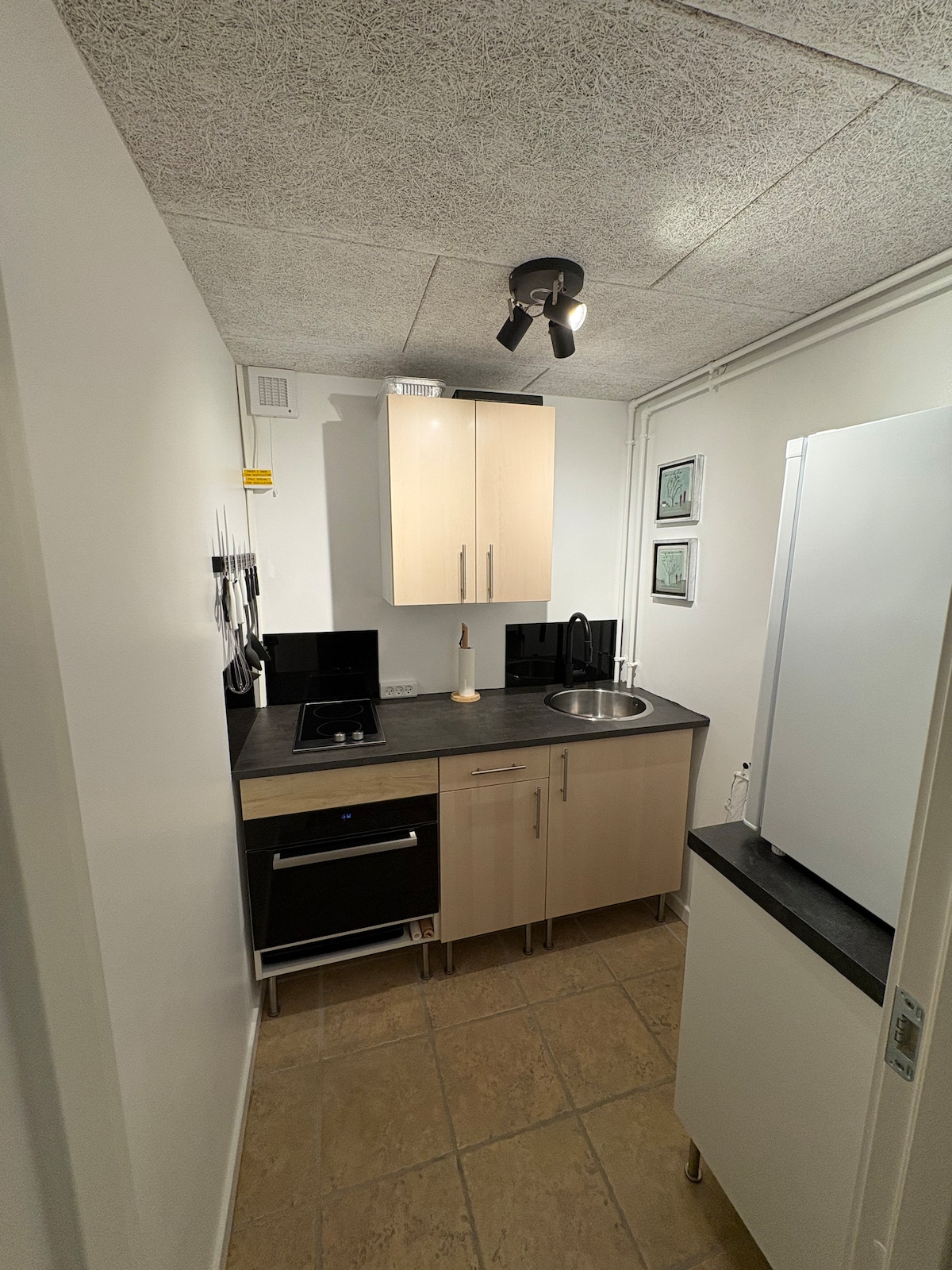 Pasukan sa pamamagitan ng pribadong terrace, access sa: Silid - tulugan na may double bed, sala na may wood - burning stove, at dagdag na tulugan. Magandang maliwanag na kusina. Toilet na may shower, pati na rin ang access sa labahan. Libreng net at paradahan. Napakaganda ng lugar, kasama ang fjord, Fjordparken, at Lindholm Høje bilang mga kapitbahay. Kung maglalakad o mag - ikot ka sa fjord sa kahabaan ng Culture Bridge, mabilis kang nasa café environment ng Vestre Boat Harbour at Vestbyen. May mga bus, tren at eroplano at pamilihan sa distansya ng paglalakad at pagbibisikleta. Aalborg lungsod 2 km Bawal manigarilyo at bawal ang mga hayop.